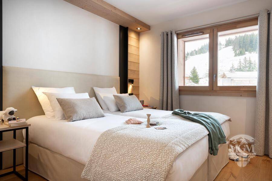 Fläche von ungefähr 60 m². Orientierung : Süd. Wohnzimmer mit 2 Ausziehbetten. Schlafzimmer mit Safe, Dusche, Doppelbett, WC. Schlafzimmer mit 2 Einzelbetten. Küche mit Wasserkocher, Kaffeemaschine, , kleiner Backofen mit Mikrowellenfunktion, Toaster, Geschirrspülmaschine, Induktionsherdplatten, Kühlschrank. Badezimmer mit Badewanne, Handtuchtrockner. separates WC. Balkon mit Gartentisch und -stühle.