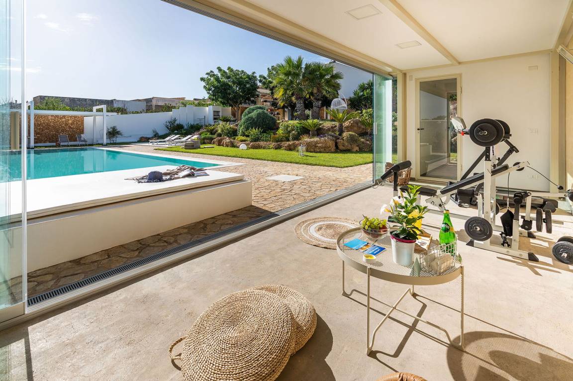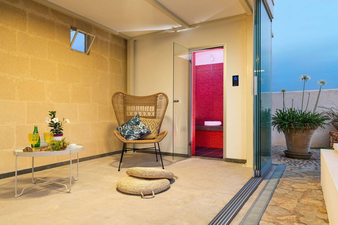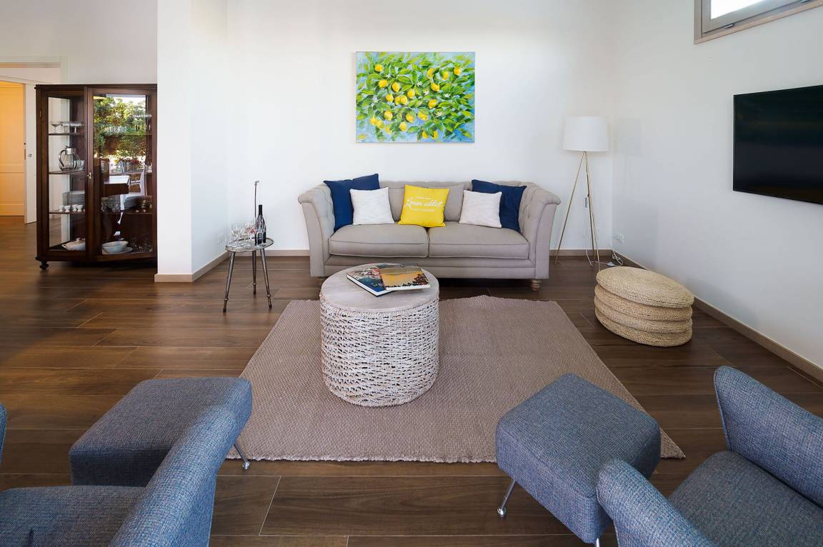 Wohnzimmer 2: Sofa (Personen: 2), drei Sessel, Esstisch (Personen: 6), WiFi Internet, Internet, Klimaanlage, Satelliten-TV, Ausgang auf die Terrasse.