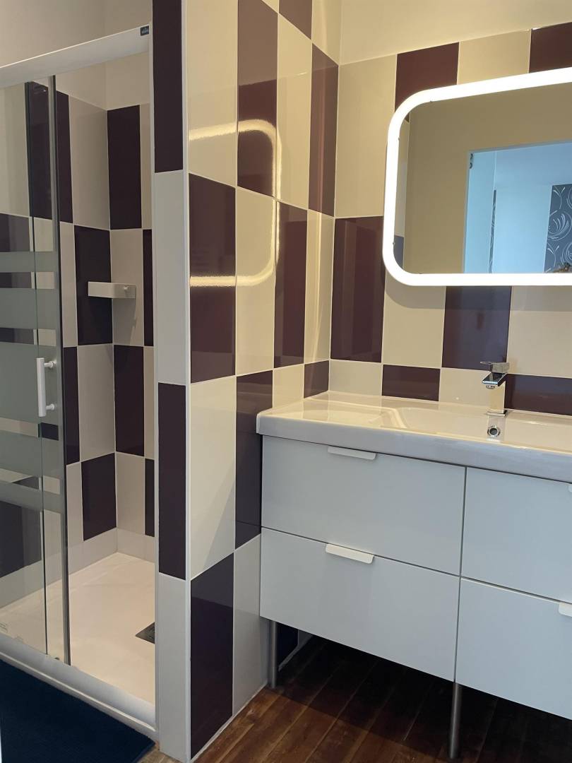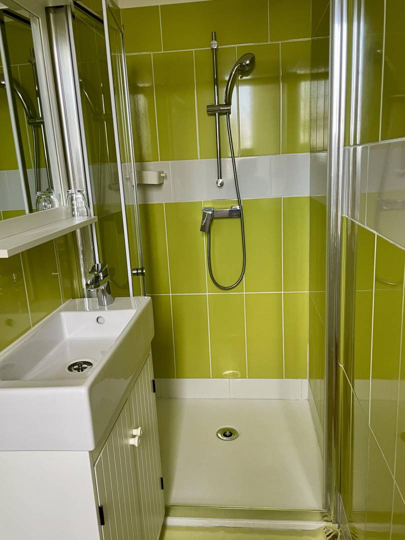 „Beau gite ! La chambre avec salle de bains verte manque de rangements, par rapport aux 2 autres chambres, pas de porte manteaux, prs de la douche, un derriere la porte du wc ne serait pas de trop non plus sinon beau séjour et belle région“