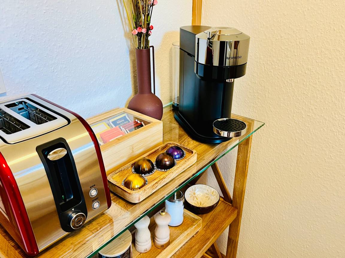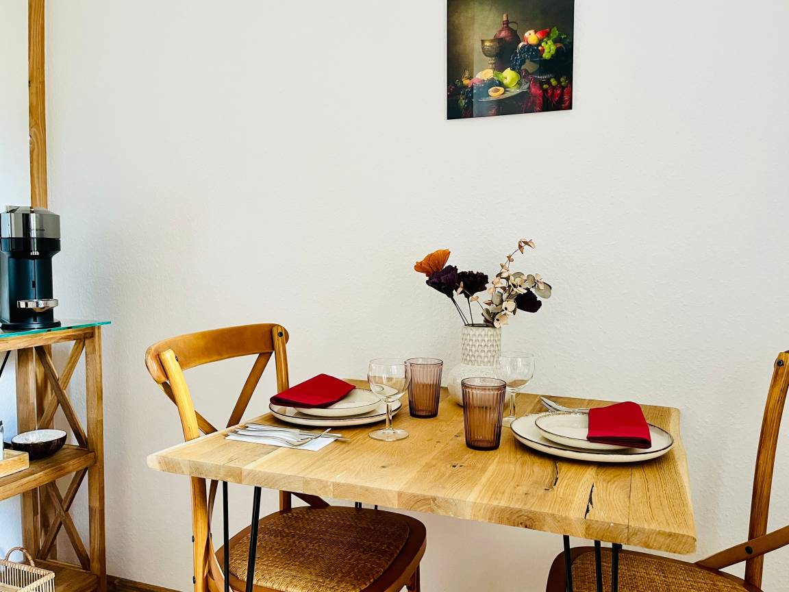 Unser Apartment NOVA verfügt über eine gemütliche Wohnschlaf Bereich, ein helles modernes Badezimmer. Das Apartment ist mit hochwertigen Möbeln und Annehmlichkeiten ausgestattet, um Ihren Aufenthalt so angenehm wie möglich zu gestalten.