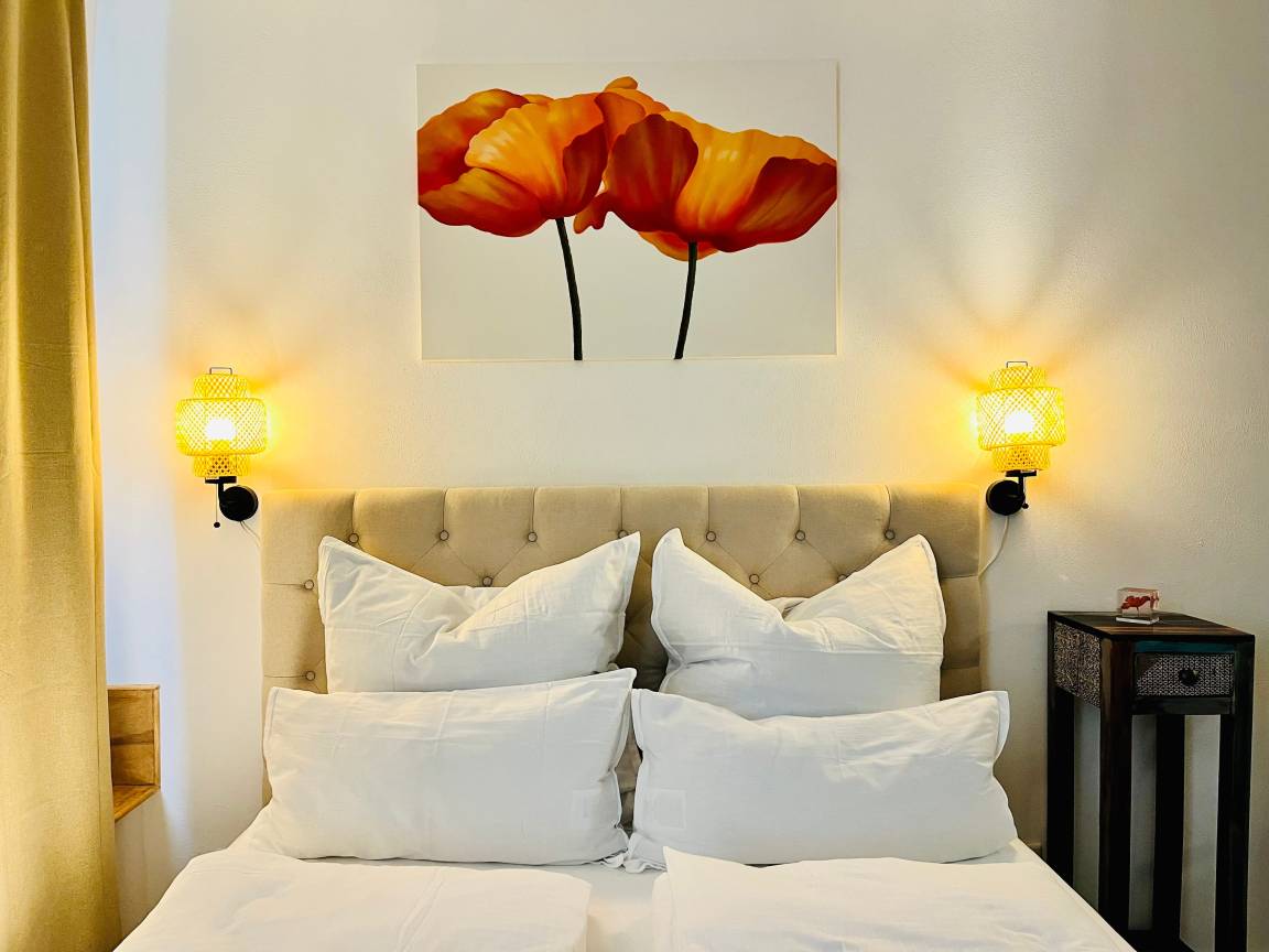 - gemütliches Doppelbett Doppelbett im Wohnbereich