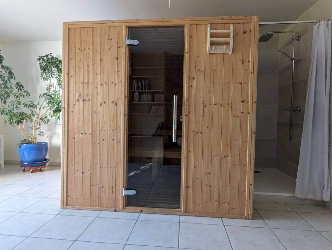 „Location idéale pour les petits et les grands (et les grands qui veulent rester petit).Confort à tous les niveaux:-literie au top-cuisine hyper fonctionnelle, vaisselle en quantité, nombreux équipements de qualité-grands espaces lumineux-sauna et jacuzzi spacieux et accessibles 24h/24, WAOUH !-du bois bien sec pour les amateurs de flambéeMaison bien située si vous souhaitez visiter la région. Commerçants à quelques minutes en voiture (boucher traiteur, boulangerie).Pour ne rien gâcher les hôtes sont vraiment sympa et disponibles si besoin. Le plus dur sera de repartir...Bref, du bonheur !“