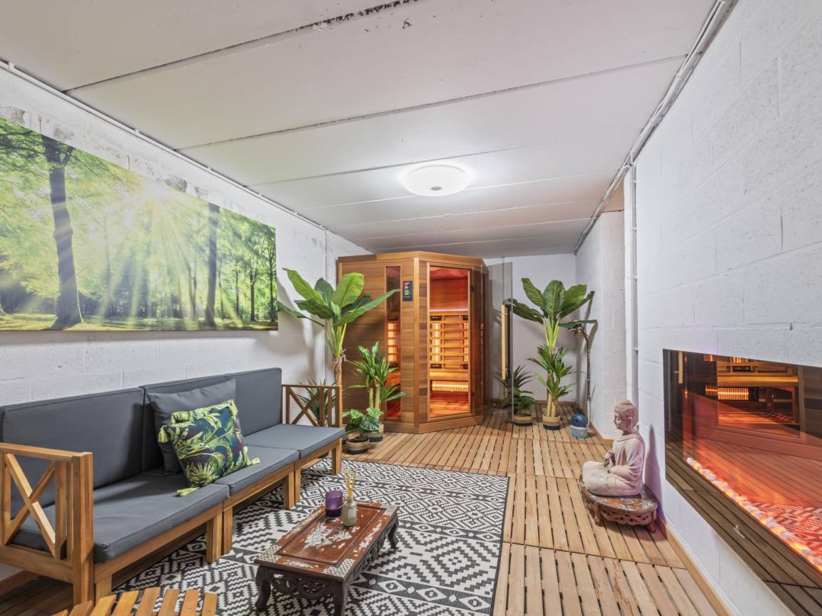 Wellness Badewanne(im Garten), Terrasse(alleinige Nutzung), Garten(alleinige Nutzung, umzäunt), Fahrradabstellraum, Gartenmöbel, BBQ(Gas), 3x Parkplatz, Teich(umzäunt), Parasol, Markise, Gartenlounge, Gartenhaus
