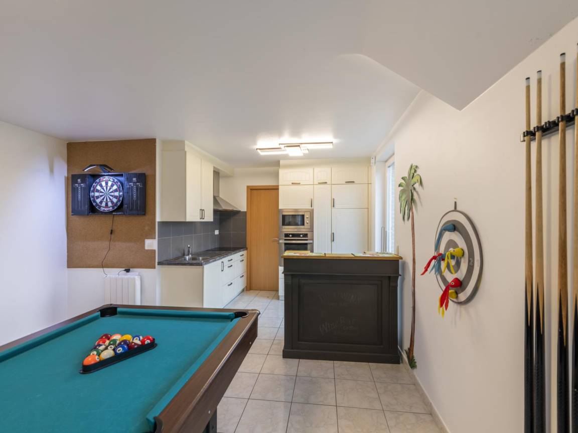 Gästeunterkunft in der 1. Etage: Schlafzimmer mit Doppelbett(Boxspring, 180 x 200 cm) , Badezimmer mit Dusche, Waschbecken, Toilette , Toilette mit Waschbecken, Toilette , Freizeitraum mit Spielkonsole, Bar, Kühlschrank, Dart, Billard , Balkon