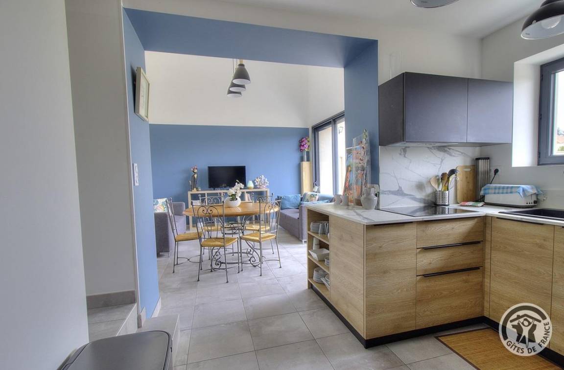 „Bon accueil de la propriétaire qui nous a fait tout visiter, nous avait mis de l'eau et du jus de fruit au frigo et chose appréciable, les lits étaient faits. Par contre, je déplore le manque de faitout avec couvercle, une petite casserole, une porte où la vaisselle se trouve pour éviter la poussière..., un terrain clos mais là nous étions prévenus et comme nous avons pu nous garer juste devant, c'était super cool. On déplore une odeur forte (genre chat) et l'avons signalé mais je recommande ce gîte et suite contente de mes vacances“