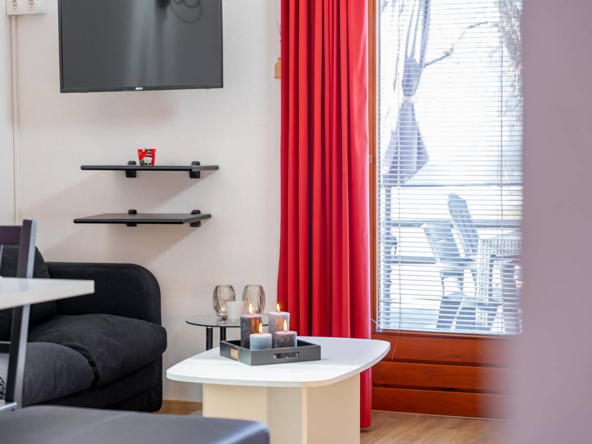 In der 1. Etage: offene Küche mit Kochplatte(4 Kochplatten, Ceranfeld), Wasserkocher, Dunstabzugshaube, Kaffeemaschine(cups), Backofen, Geschirrspüler, Kühl-/Gefrierkombination , Wohn/Esszimmer mit TV(Flatscreen, smart TV), Esstisch(6 Personen), Sitzecke , Schlafzimmer mit Doppelbett , Durchgangsschlafzimmer mit Etagenbett , Badezimmer mit Badewanne, Dusche, Waschbecken, Toilette , Terrasse(alleinige Nutzung)