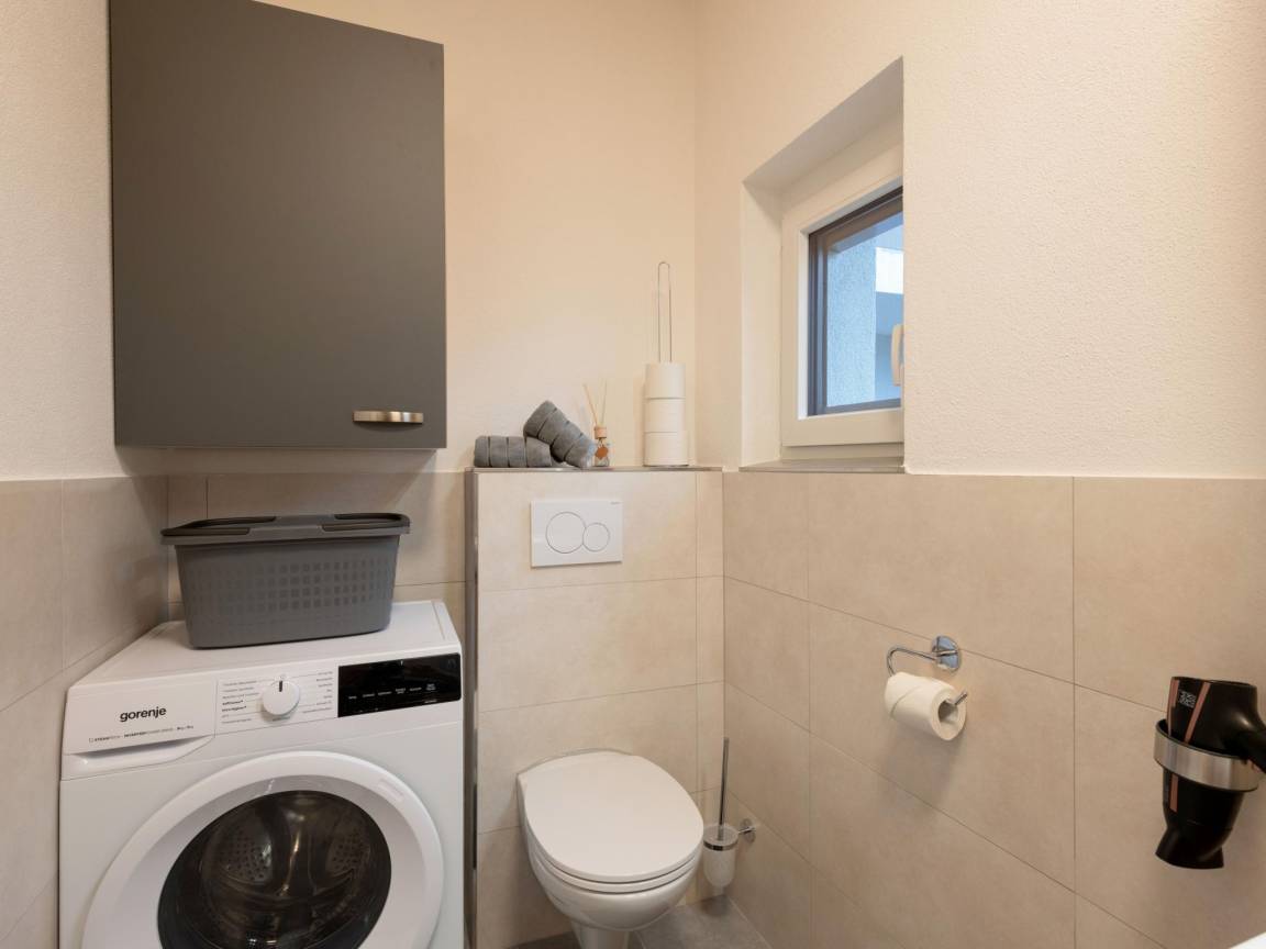 Layout : Parterre(privater Eingang): offene Küche mit Wasserkocher, Toaster, Kochherd(2 Kochplatten), Dunstabzugshaube, Kaffeemaschine(cups), Kaffeemaschine(Filter, nespresso cups), Backofen, Geschirrspüler, Kühlschrank(+ Gefrierfach) , Wohn/Esszimmer mit Einzelklappbett (90 x 200 cm), TV(Flatscreen), Esstisch(3 Personen) , Schlafzimmer mit Doppelbett(180 x 200 cm) , Badezimmer mit Dusche, Waschbecken, Toilette, Waschmaschine, Föhn