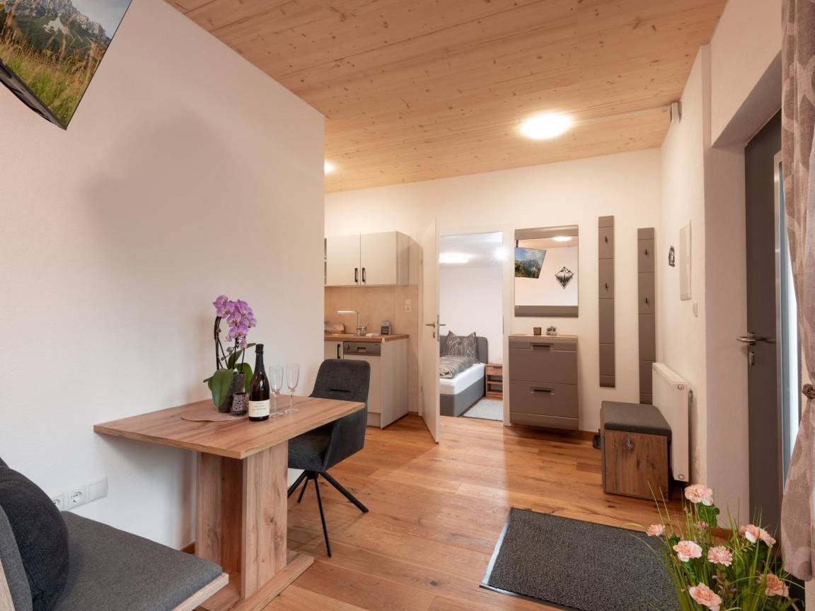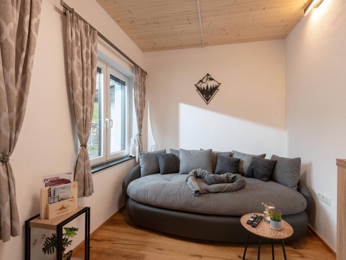 Hausbeschreibung : Stylisches Apartment in idyllischer Ruhelage, direkt am Fahrradweg und nur 650 m vom Skibus entfernt. Das Apartment bietet ein Wohn-Esszimmer mit Zustellbett, eine voll ausgestattete Küche, ein Schlafzimmer mit komfortablem Doppelbett sowie ein modernes Bad mit Dusche, WC und Waschbecken. Wanderwege starten direkt vor der Tür, und ein Parkplatz ist ebenfalls vorhanden – ideal für einen entspannten Urlaub!