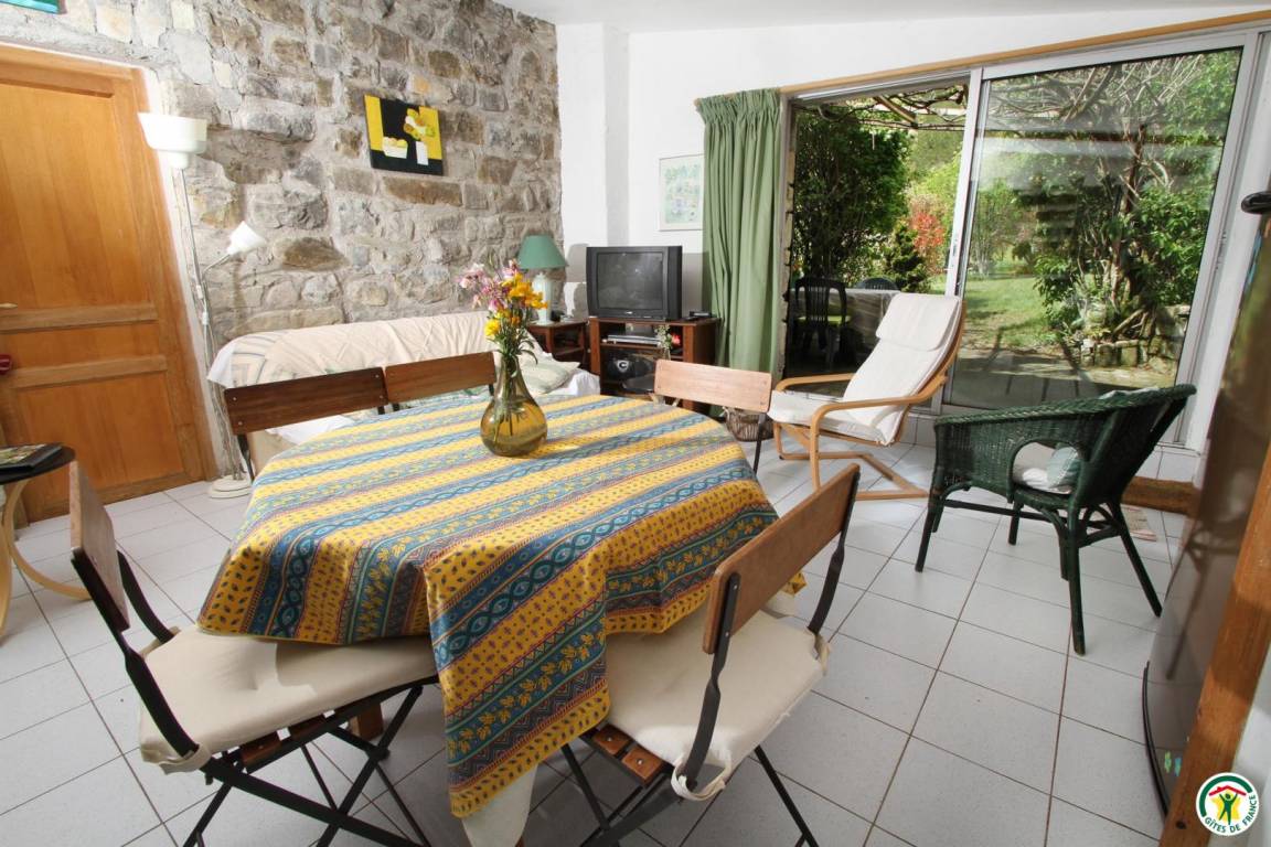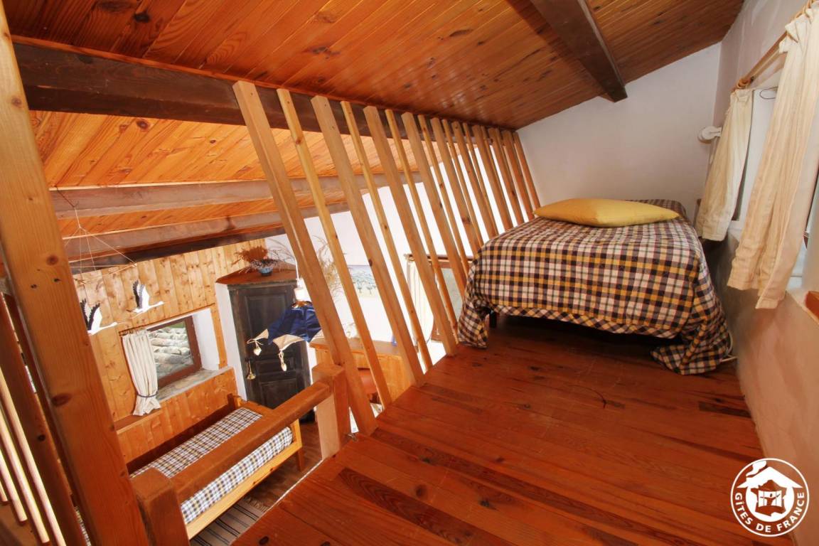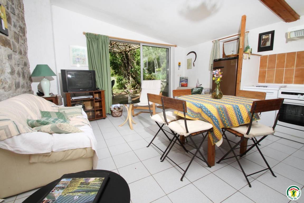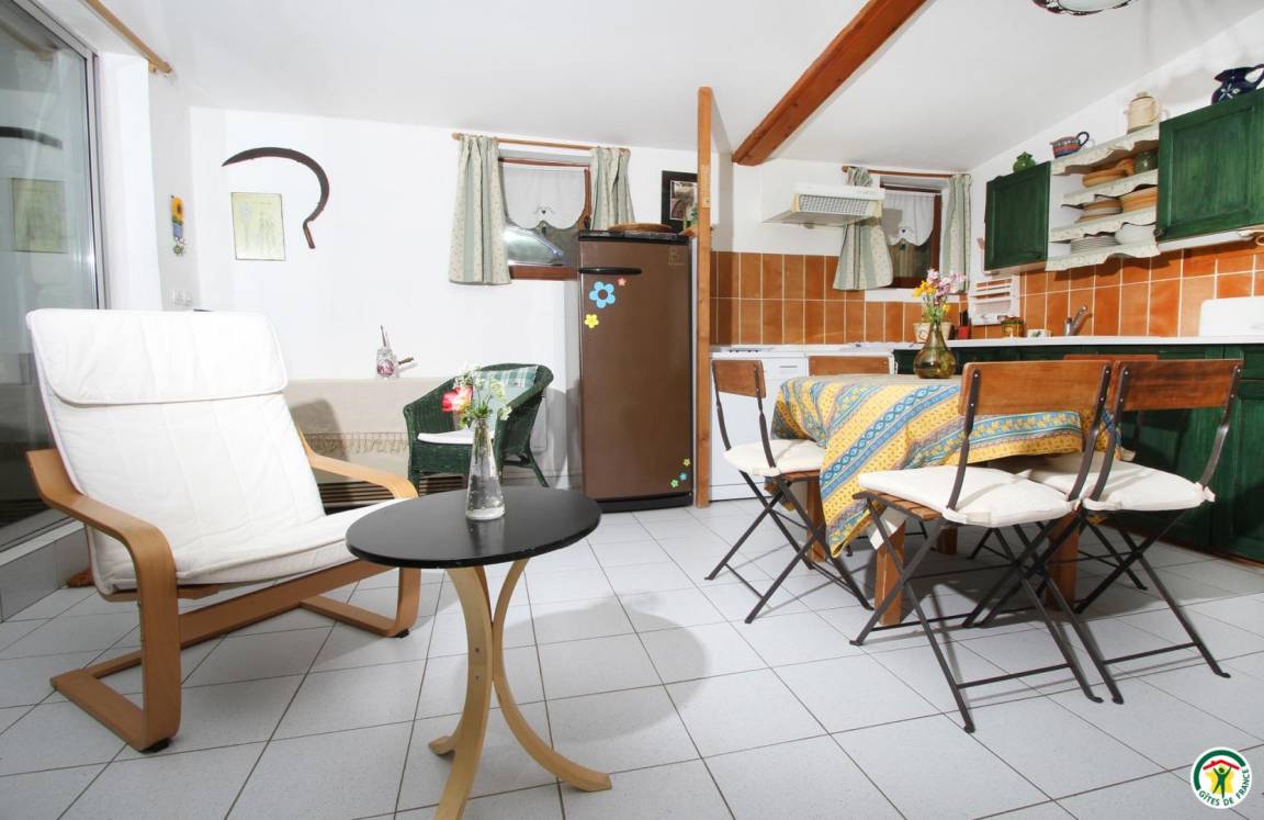 Erdgeschoss: Küchenzeile, Wohnzimmer mit Schlafsofa, 1 Schlafzimmer (1 Bett 140 cm), Bad mit Dusche. Obergeschoss: 1 Schlafzimmer (2 Betten 90 cm) mit Zwischengeschoss (1 Bett 90 cm, über eine Leiter zugänglich). Swimmingpool (4,5 x 9,5 m), gemeinsame Nutzung mit den Vermietern.