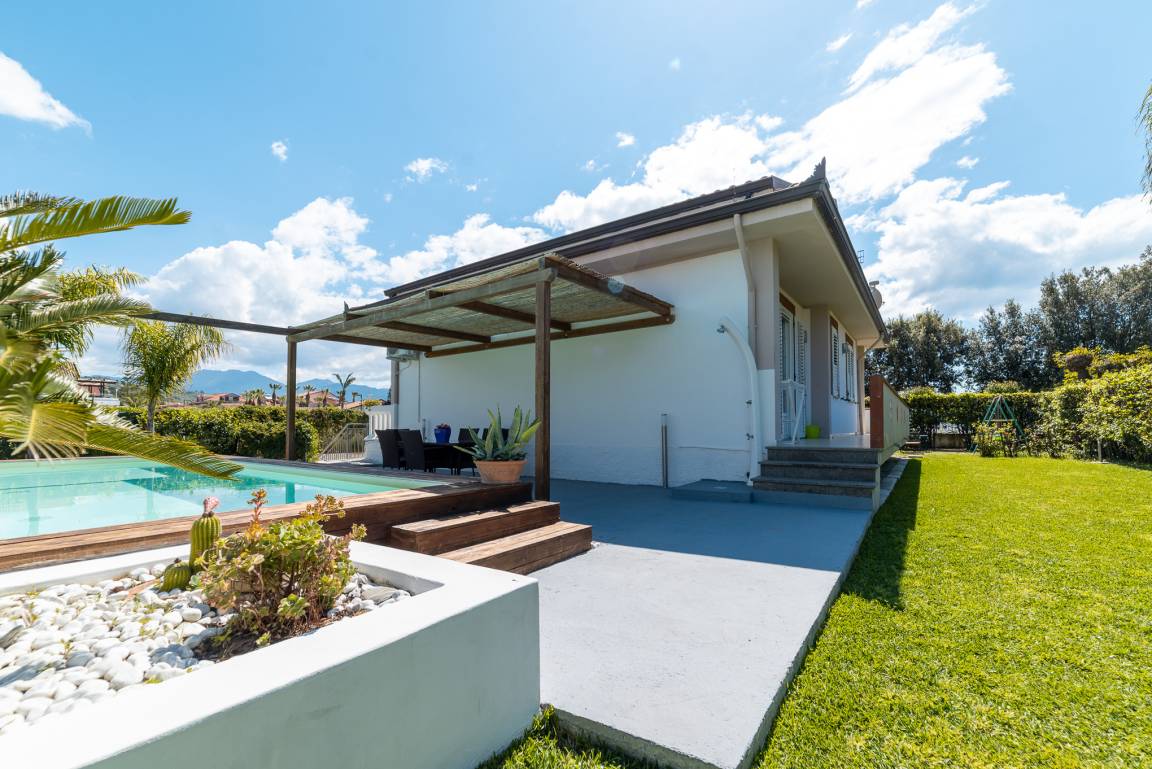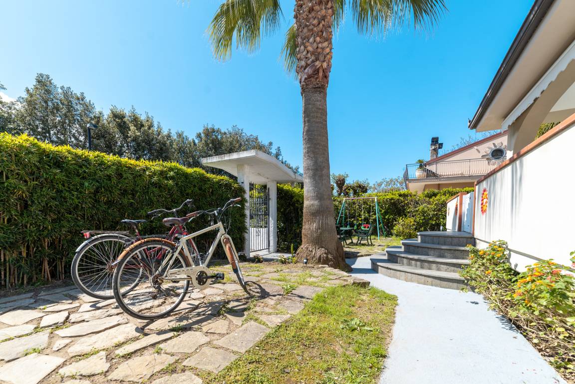 Family Della Monica's holiday home is a mere ca. 300 m walk from the long, sandy beach of holiday resort Marina di Ascea. On the round about 1,000 m² property, which for the most part stretches out as a garden behind the house, the 8 m x 4 m pool installed in 2021 and an outdoor kitchen enhance the Cilento holiday atmosphere.