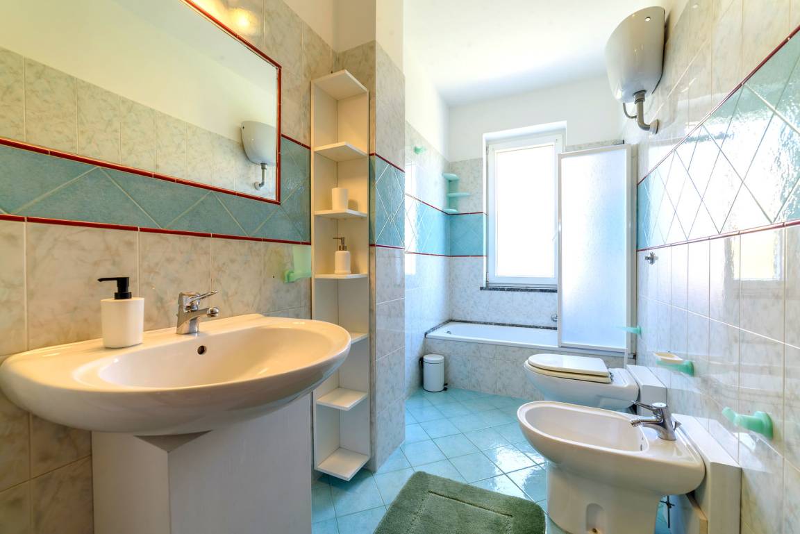 Villa Brigida offers a comfortable 100 m² of living space and includes: two bedrooms (one with double bed and access of the outdoor area; one with double bed and single bed), two bathrooms (bathtub with shower device/WC/bidet; shower/WC/bidet), an open-plan living area with sofa and large LCD TV as well as a kitchen unit (incl. gas stove and oven, dishwasher, coffee machine (capsules), electric kettle, microwave, refrigerator) and a dining area.
