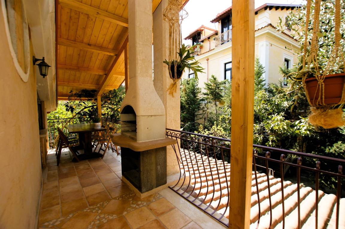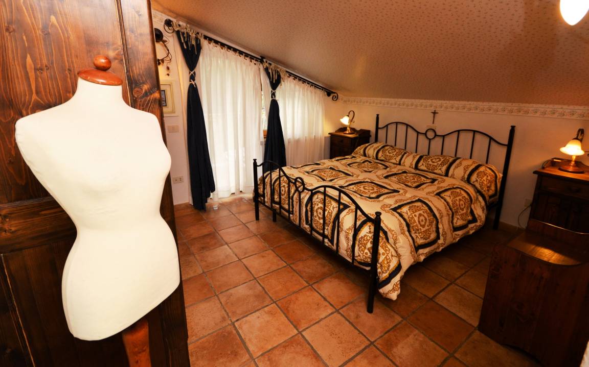 One of the bedrooms as well as the living area open onto the apartment's large, roofed balcony, which runs the width of the house and where you find outdoor furniture and a masonry grill at your disposal.