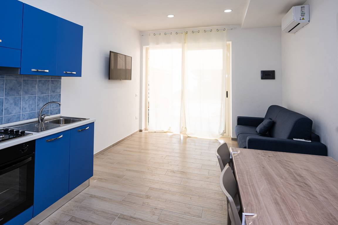 Apartment no. 5 is a wonderful accommodation for a family. It includes two bedrooms (double bed; twin beds), a kitchen-living-dining room with a sofa bed for two (children/teenagers), and a bathroom (shower/WC/bidet). The apartment features Smart-TV in the double bedroom and the living area, air conditioning (extra charge for use), WiFi and washing machine.