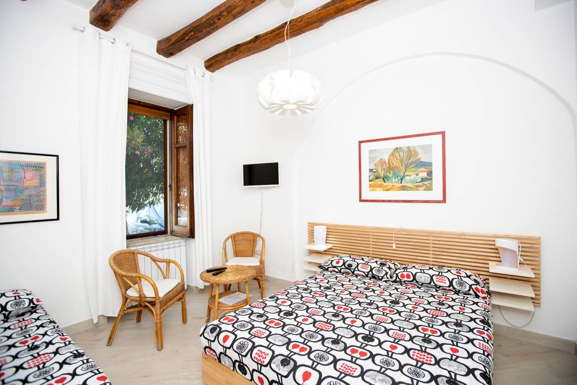 Apartment Anakis includes a bedroom, which sleeps three (double bed + single bed), a 'living room' with kitchen unit (incl. gas stove, oven, refrigerator, dishwasher, electric kettle) and dining area and a bathroom (shower/WC/bidet, hair dryer). The apartment's ca. 20 m², furnished terrace in an inner courtyard behind the house is accessible from the living area.