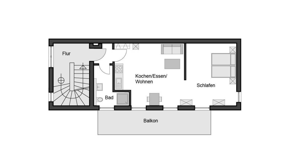 45 m² Ferienwohnung ∙ 1 Schlafzimmer ∙ 4 Gäste