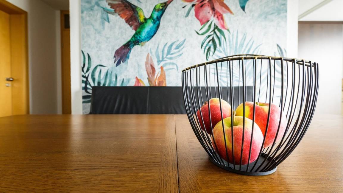 Großer und moderner Wohnraum für 4 Personen mit Wohnküche und Essbereich, 2 getrennte Schlafzimmer (Zusatzbett möglich), Ideal für Familien – besonders kinderfreundlich, Badezimmer mit Badewanne, 2 Waschbecken, Dusche, 2 WC, Handtuchwärmer, Föhn und Kosmetikspiegel, Einbauküche mit Ceranfeld, separater Backofen, Mikrowelle, Spülmaschine, etc., Lage: 1. OG