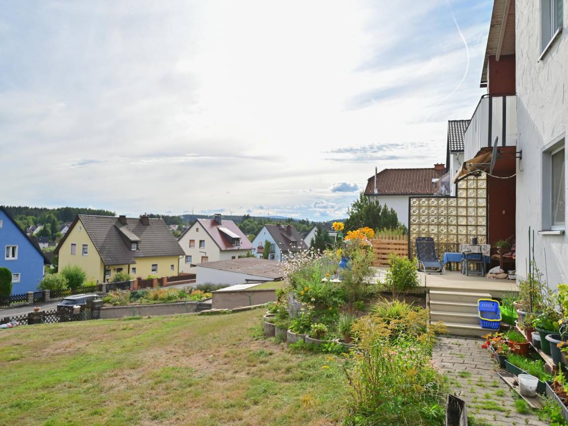 Hausbeschreibung : Willkommen in dieser gemütlichen und gut ausgestatteten Ferienwohnung am Waldrand von Marktleuthen. Genießen Sie sonnige Stunden auf dem Balkon, entspannen Sie im großen Garten mit überdachter Sitzecke und lassen Sie den Blick über Wälder und Wiesen schweifen. Die Wohnung verfügt über alle Annehmlichkeiten, die Sie für einen entspannten Urlaub benötigen. Abseits vom Trubel, aber nah an Wanderwegen, Seen und den schönsten Zielen des Fichtelgebirges – hier finden Sie Ruhe, Natur und Erholung pur