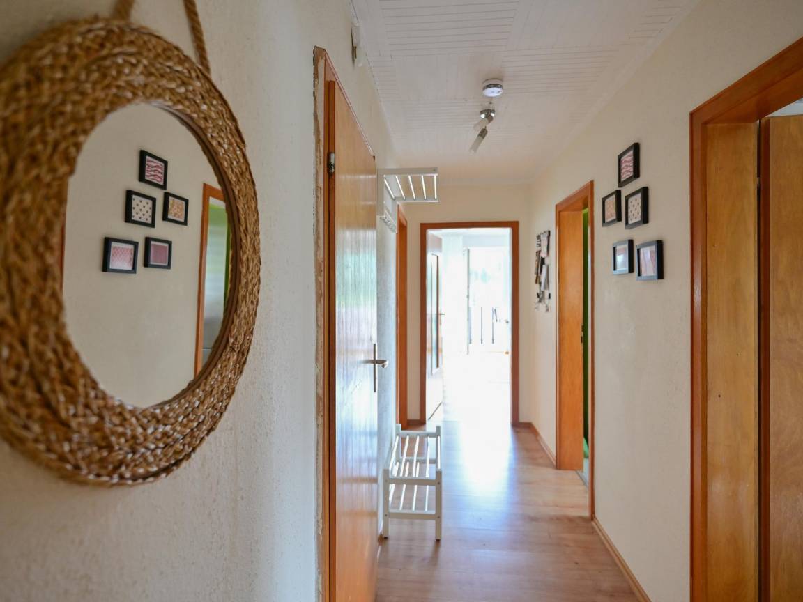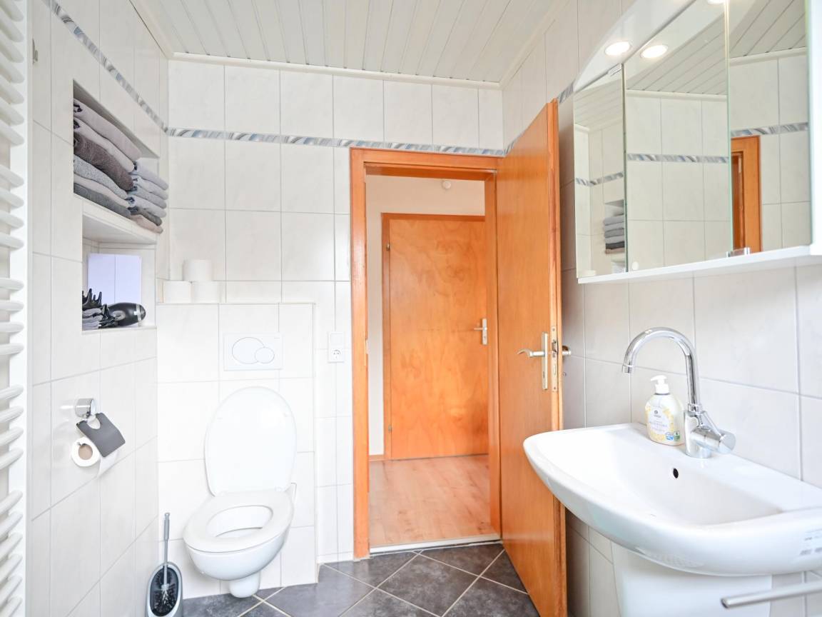 Layout : In der 1. Etage: Küche mit Wasserkocher, Wasserkocher, Toaster, Kochherd(4 Kochplatten, Ceranfeld, elektrisch), Dunstabzugshaube, Kaffeemaschine(cups, Filter), Backofen, Mikrowelle, Geschirrspüler, Kühlschrank(+ Gefrierfach), Tiefkühlschrank , Wohn/Esszimmer mit Doppelschlafcouch, TV(Kabel), Esstisch, Sitzecke , Schlafzimmer mit Doppelbett(Boxspring, 200 x 200 cm) , Schlafzimmer mit Doppelbett(160 x 200 cm) , Schlafzimmer mit Badezimmer mit 2x Einzelbett(100 x 200 cm), Waschbecken, Dusche, Toilette , Badezimmer mit Badewanne mit Dusche, Waschbecken, Toilette, Föhn , Flur