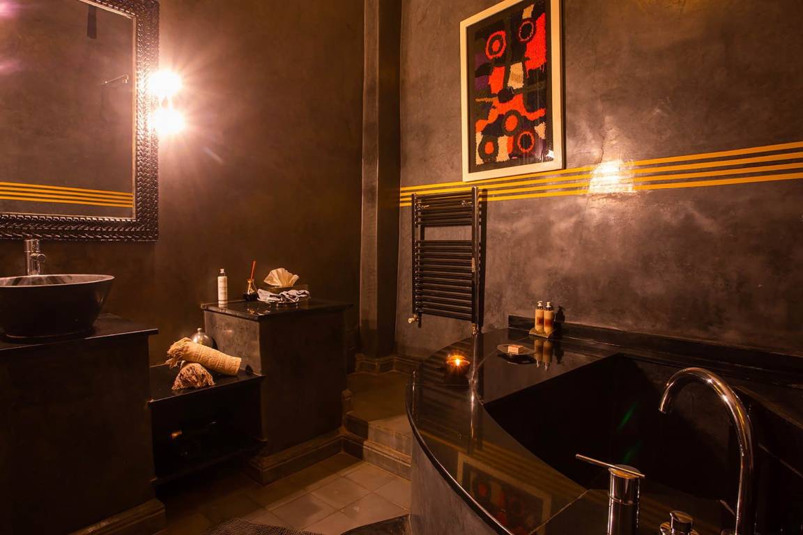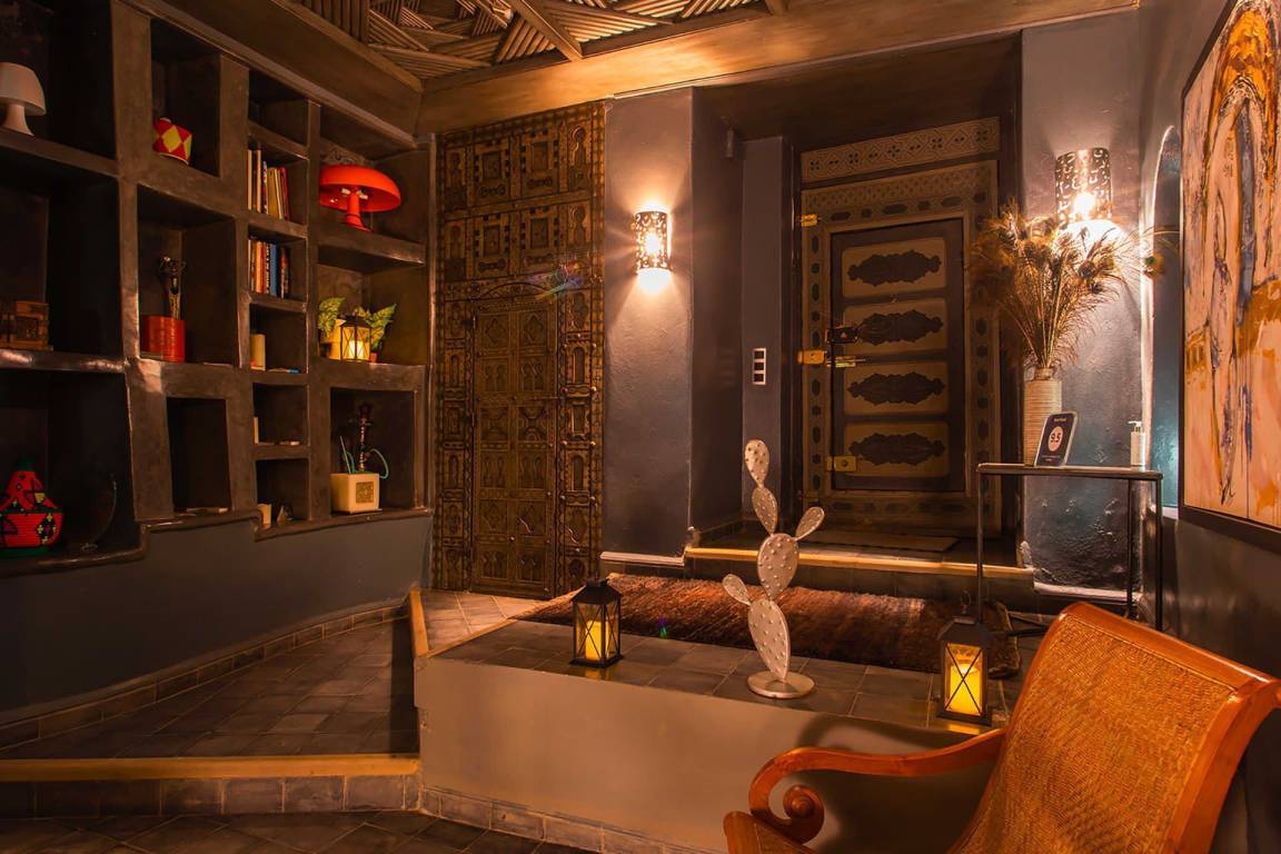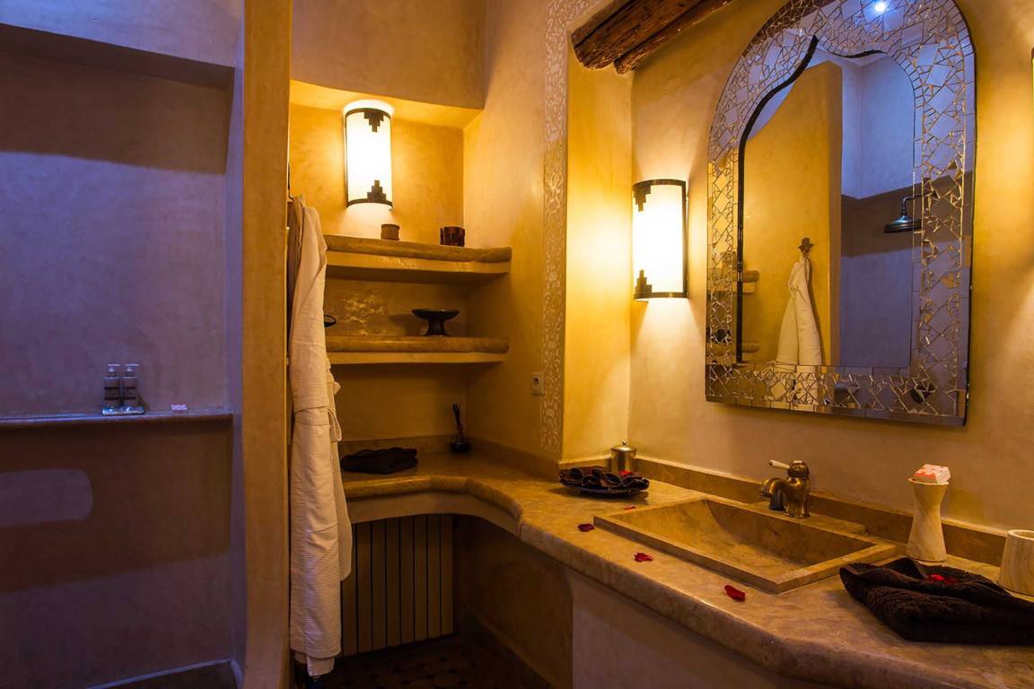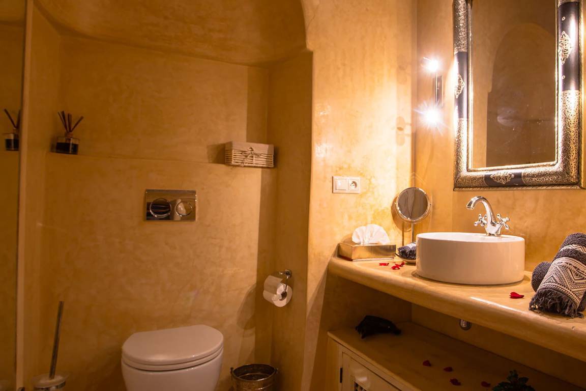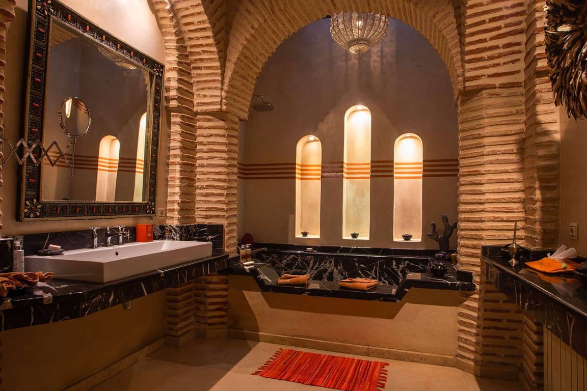 Das Riad Ikram ist ein traditionelles marokkanisches Riad mit einer Gesamtfläche von 6 Schlafzimmern und 6 Bädern, verteilt auf mehrere Geschosse, und bietet Platz für bis zu 12 Gäste. Die Räume sind um einen zentralen Innenhof angeordnet, der der klassischen Architektur der Medina entspricht und einen intimen Rückzugsraum schafft. Jedes Schlafzimmer ist mit traditioneller marokkanischer Handwerkskunst und modernem Komfort ausgestattet und verfügt über ein eigenes Bad. Die oberen Geschosse führen zu einer Panoramaterrasse mit Blick über die Dächer von Marrakesch.