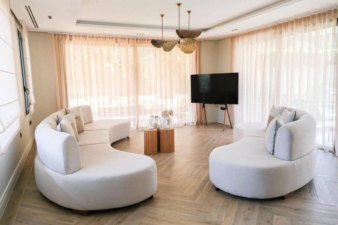 Die Villa umfasst 4 Schlafzimmer und 4 Bäder und bietet Platz für bis zu 8 Gäste. Die Räumlichkeiten sind großzügig proportioniert und bieten jedem Gast ausreichend persönlichen Raum während des Aufenthalts.