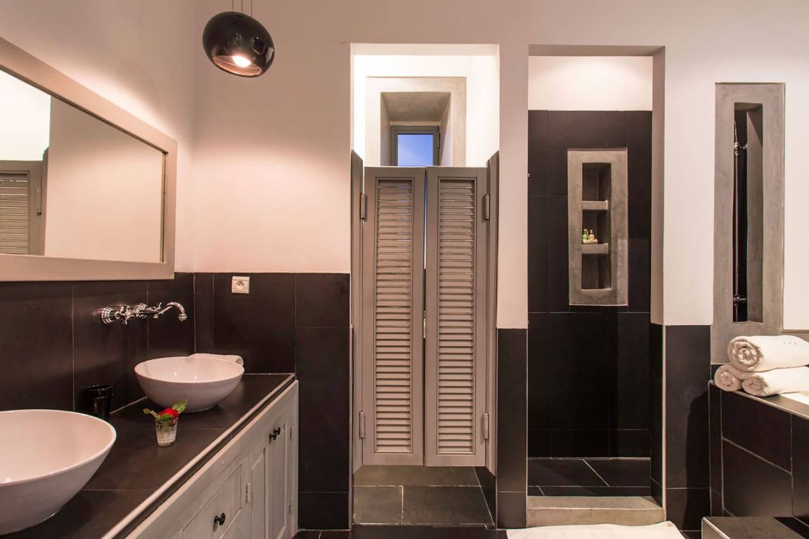 Die Villa bietet Platz für bis zu 14 Gäste und verfügt über 7 Schlafzimmer und 6 Bäder, verteilt auf mehrere Geschosse. Die Schlafzimmer sind elegant möbliert. Die 6 Bäder sind zweckmäßig ausgestattet. Der Grundriss verbindet Gemeinschaftsbereiche mit privaten Schlafquartieren.
