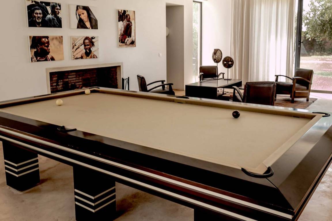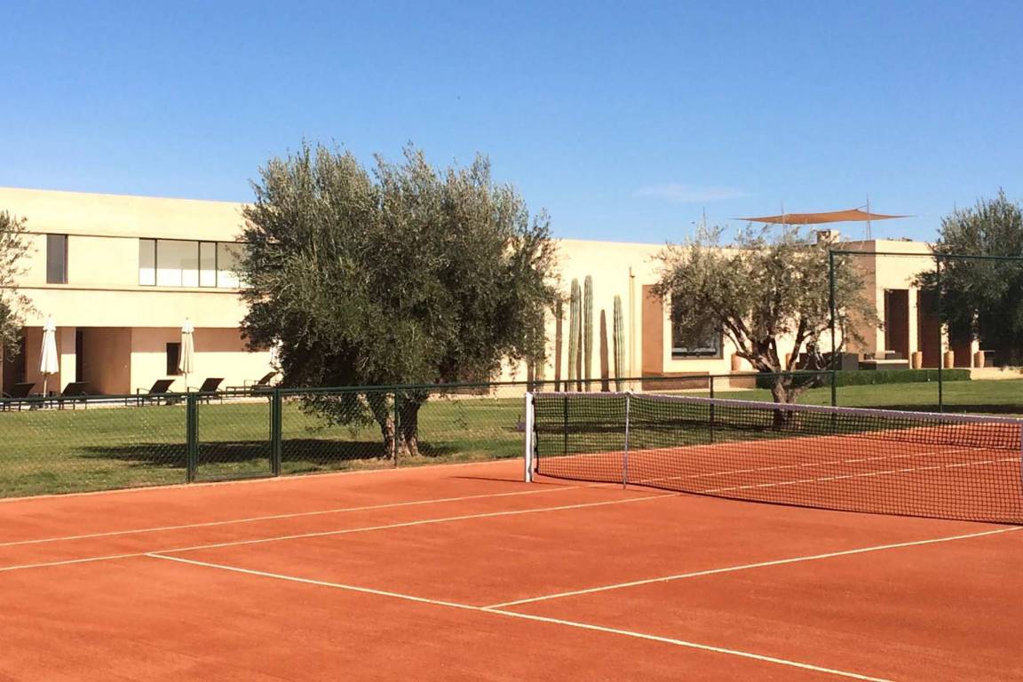 Die Küche verfügt über eine Geschirrspülmaschine und eine Mikrowelle. Die Heizung und Klimaanlage sind vorhanden. Das Wohnzimmer ist mit einem Fernseher und Satellitenfernsehen ausgestattet. Die Villa verfügt über eine private Terrasse und einen privaten Garten; ein privater Swimmingpool, ein Hamam, ein Massageraum und ein Tennisplatz stehen zur Verfügung.