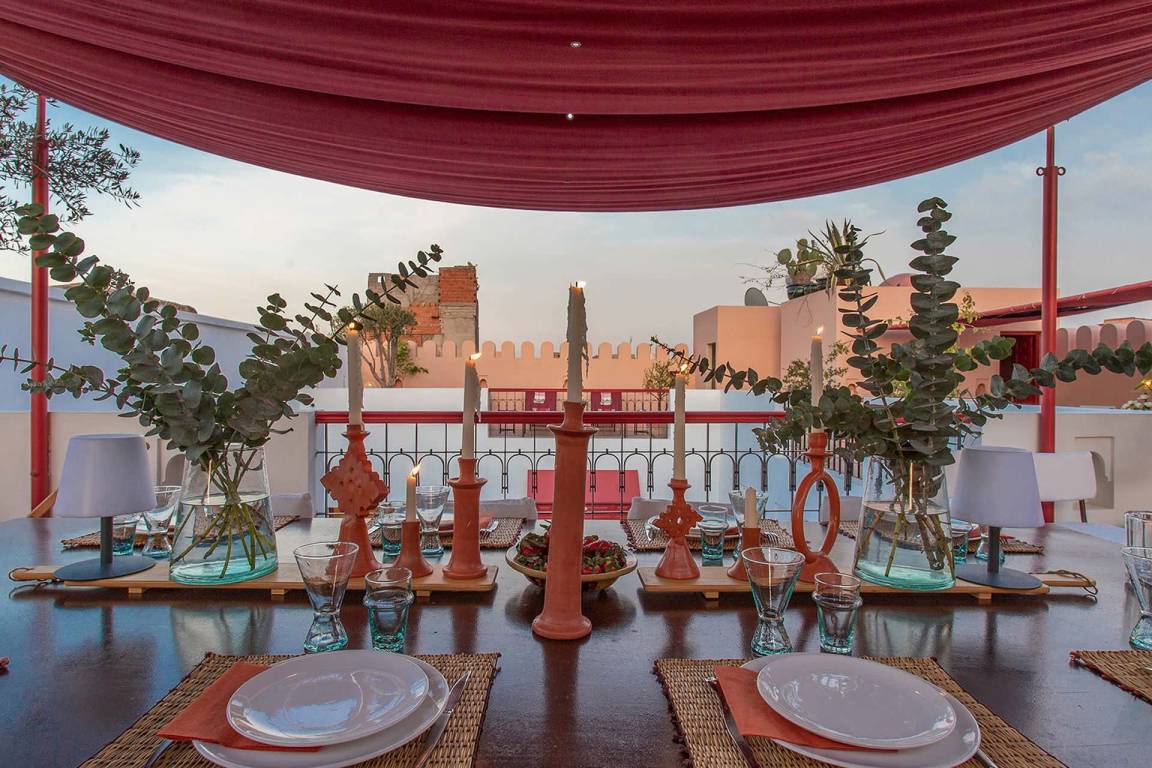 Das Haus ist im Stil eines traditionellen Riads gestaltet. Eine Panoramaterrasse mit Blick über die Medina ist vorhanden.