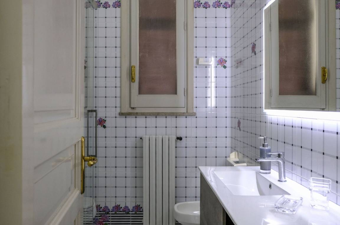 Badezimmer 1: Waschbecken, WC, Bidet, Dusche.