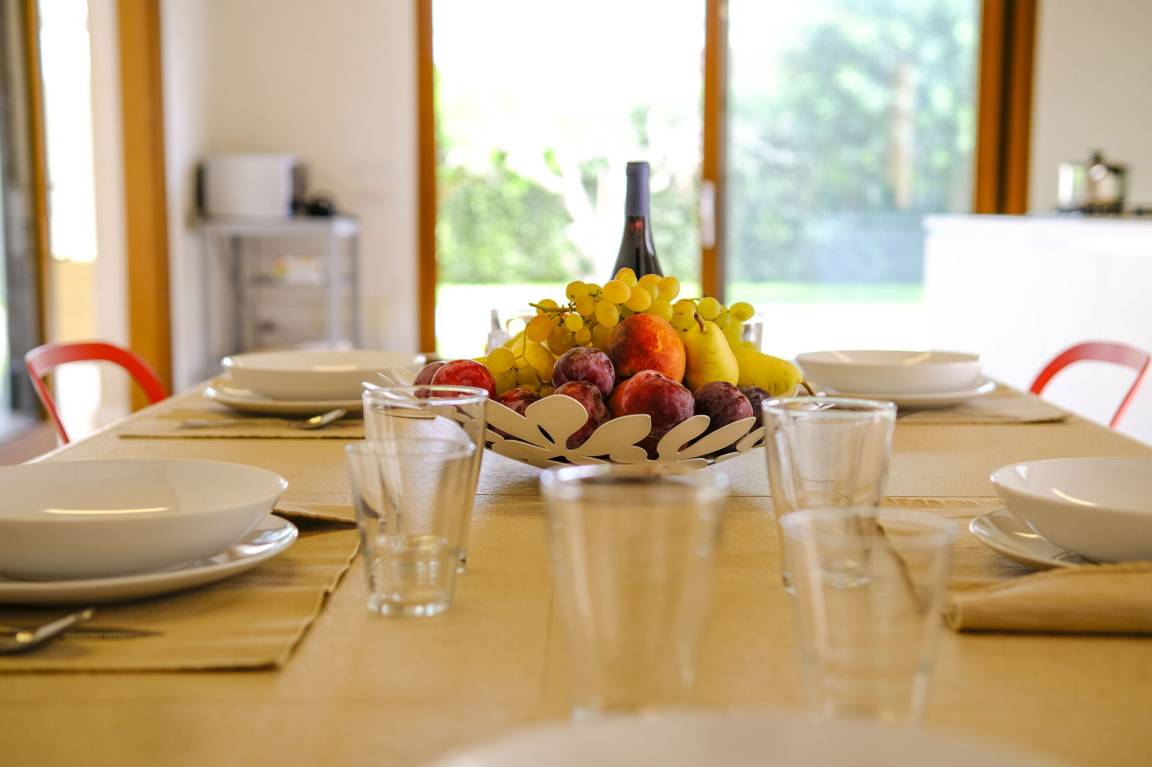 Wohnküche: Esstisch, Spülmaschine, Kühlschrank, Tiefkühler, Mikrowelle, Herd, Ofen, Toaster, Italienische Kaffeemaschine, Sofa, Kamin, WiFi Internet, Internet, Klimaanlage, TV, Ausgang auf den Garten.