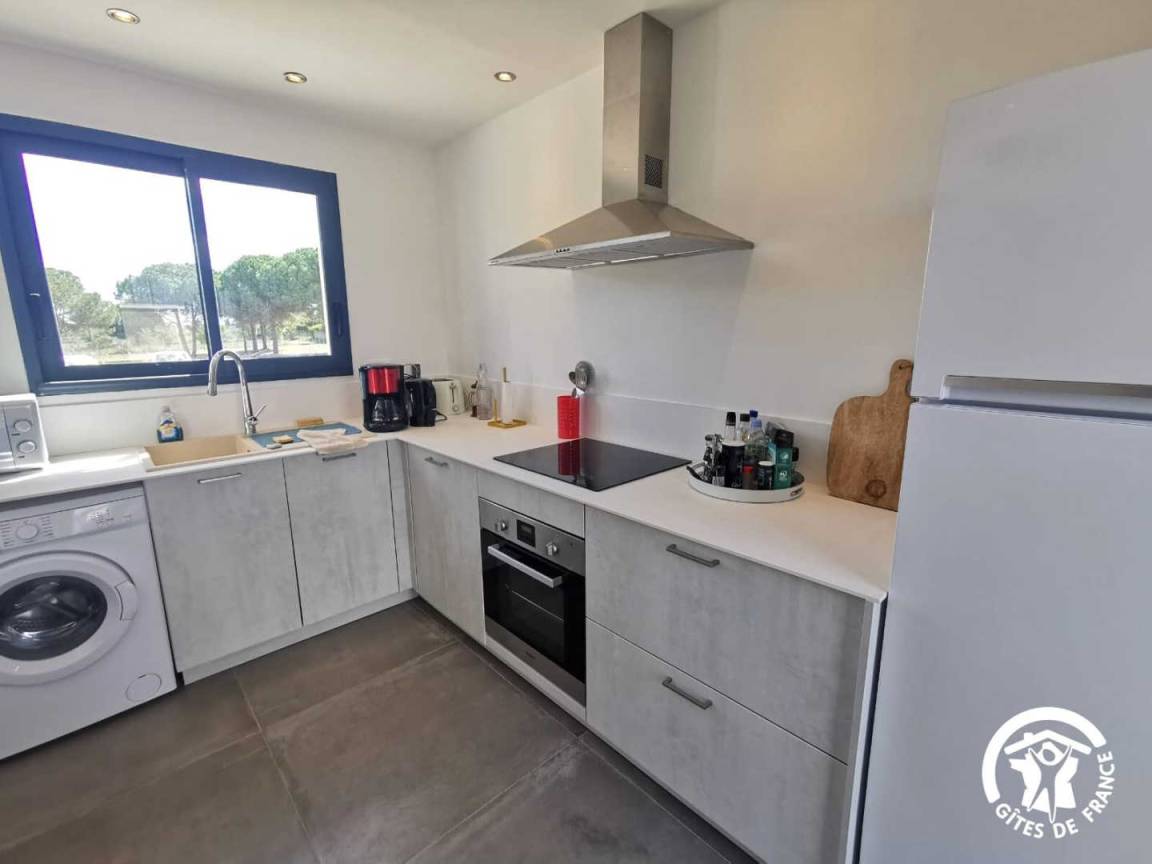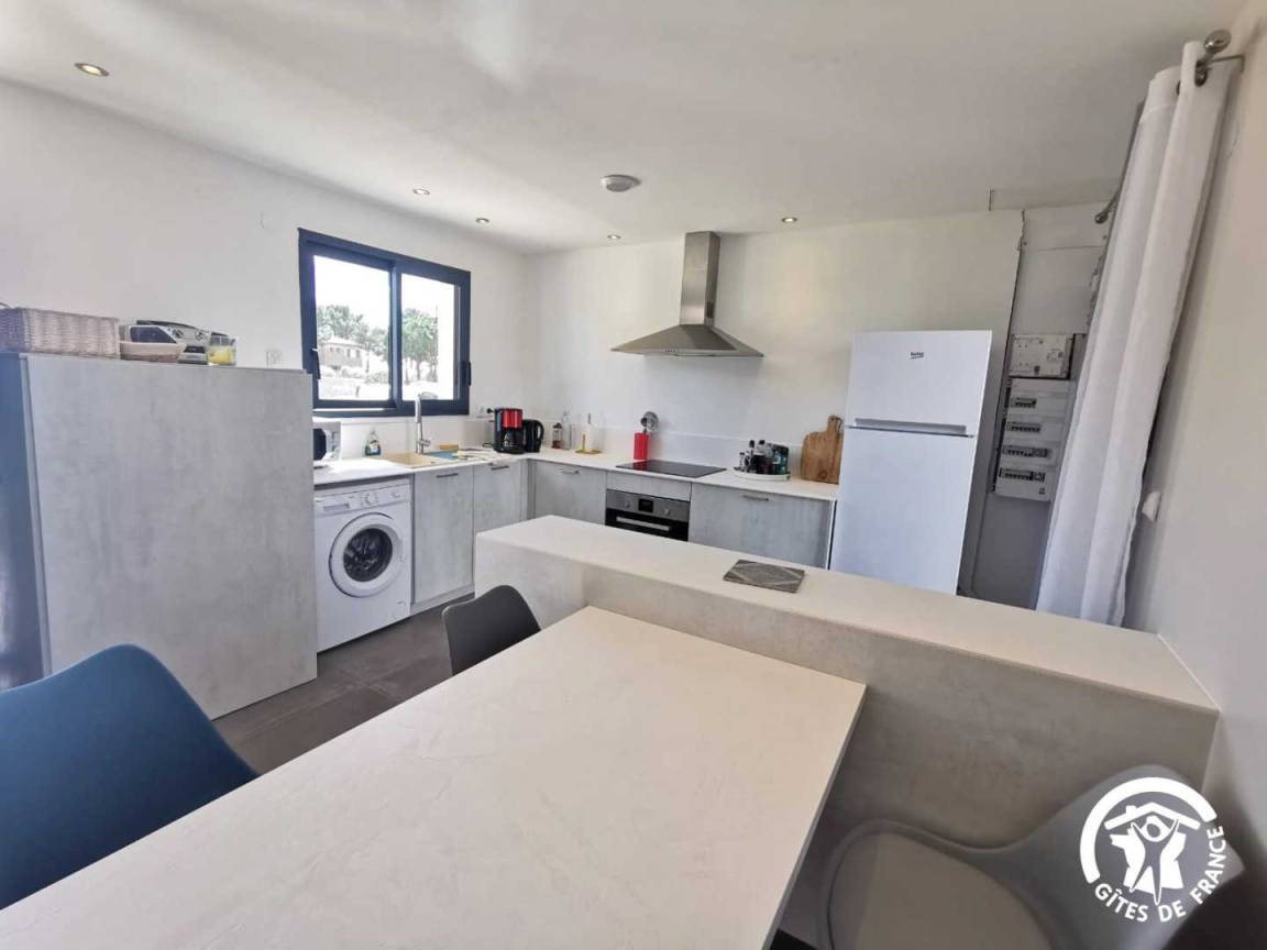 „Très bon séjour de 4 nuitsMaison au calme, agréable et spacieuse: 2 grandes chambres avec dressing( non climatisées par contre, dur dur avec la canicule) Dommage que le canapé ne soit pas convertible dans le salon. Bonne literie également. Les draps et serviettes sentent bons la lessive ! La vaisselle est neuve, il manquerait juste des petites casseroles et changer les grosses car elles sont bien abîmées au fondSituée à quelques km de la plage, prévoir 10 petites minutes seulement. Le propriétaire est très sympathique et habite juste à côté si besoin.“