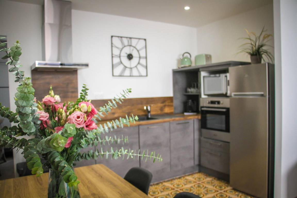 „Appartement très bien rénové, agréable à vivre, d'une extrême propreté, oliment décoré avec 2 points forts: La terrasse et le garage pratique dans ce centre-ville ancien. Juste une remarque toutefois: Il manque un peu d'équipements en cuisine (couverts, nombre d'assiettes par exemple; il me semble me souvenir que du temps où je sévissais chez Gîtes de France à la direction du Relais 65, nous appliquions une charte qui prévoyait pour verres, assiettes, couverts une quantité double de la capacité de couchage. A noter que Frédérique la propriétaire est fort aimable; d'ailleurs elle n'a pas hésité, sur ma demande, à acheter des flûtes à champagne pour que nous puissions trinquer à la nouvelle année !“