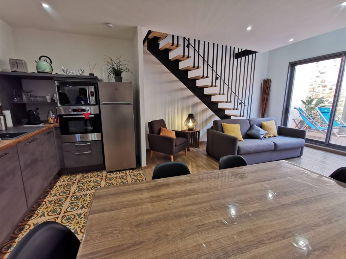 „Gite très bien conçu, fonctionnel. Le garage est un vrai plus dans le coin, la climatisation est efficace et essentielle dans chacune des pièces. Le quartier est calme et bien situé dans la ville“