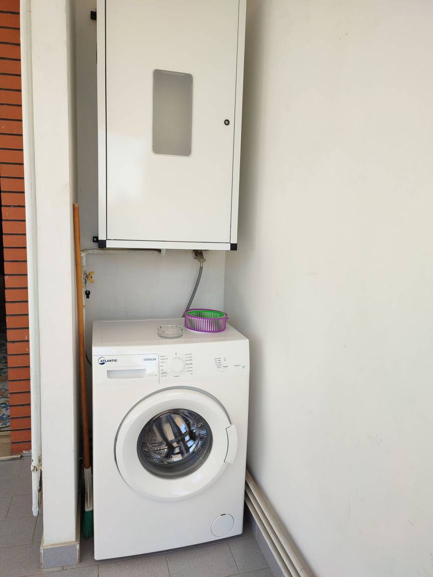 Badezimmer: Waschbecken, WC, Bidet, Dusche, Fön, Waschmaschine, WiFi Internet.