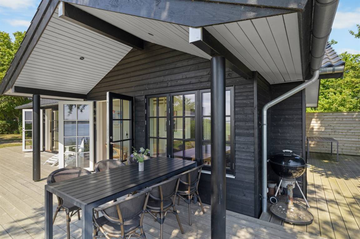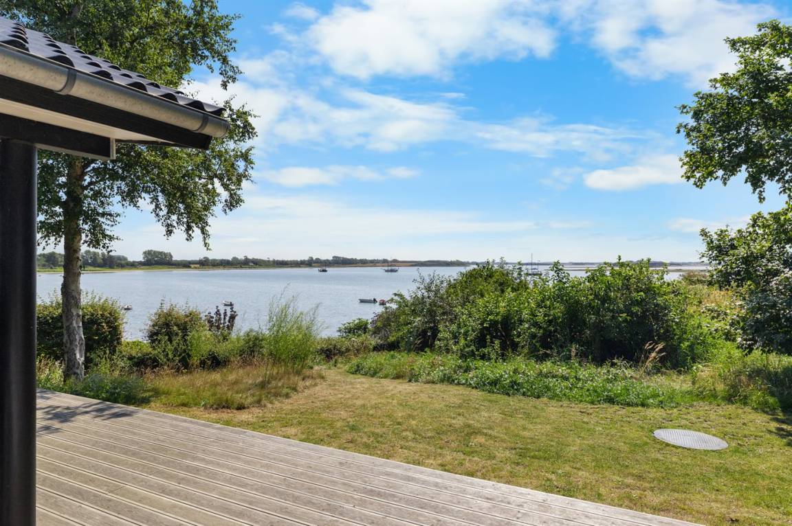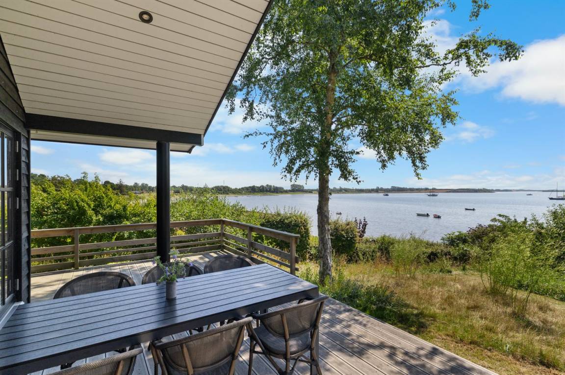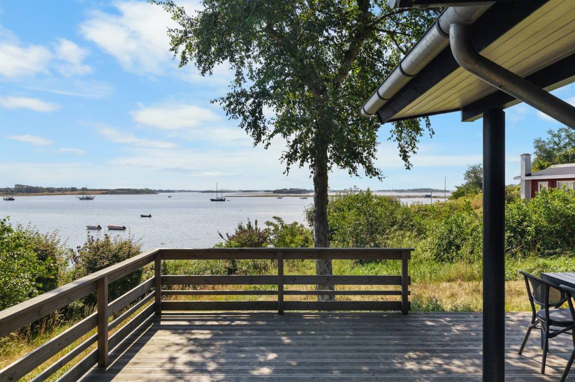 Von der großen, nach Süden ausgerichteten und teilweise überdachten Terrasse sowie vom Inneren des Hauses hast du einen herrlichen Blick über das Wasser und die Umgebung.