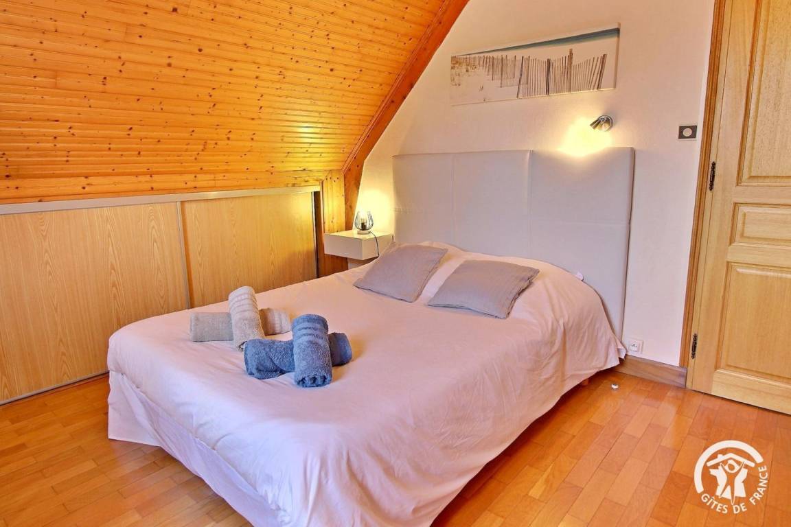 Dieses Ferienhaus besteht im Erdgeschoss aus einer Küche, einem Wohn-/Esszimmer, einem Schlafzimmer mit einem 140x190-Bett, einem Badezimmer und einer separaten Toilette mit Waschbecken. Im Obergeschoss befinden sich ein Schlafzimmer mit einem 140x190-Bett, ein Schlafzimmer mit zwei 140x190-Betten, ein Duschbad und eine separate Toilette. Draußen genießen Sie ein 1000 m² großes Grundstück mit Garten sowie zwei Terrassen in Süd-Ost- und Nord-West-Ausrichtung mit Esstisch, Grill, Sonnenschirm und Liegestühlen. Für die Unterbringung von Sportgeräten steht Ihnen eine Garage zur Verfügung. Dank eines elektrischen Tors besteht die Möglichkeit, bis zu 3 Fahrzeuge auf dem sicheren Grundstück zu parken.