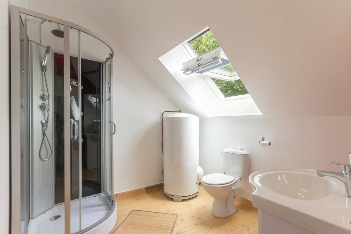 Obergeschoss: Mezzanine, 2 Schlafzimmer (ein Schlafzimmer mit 2 Betten 90 cm, ein Schlafzimmer mit 1 Bett 140 cm), ein Badezimmer mit Dusche und WC.