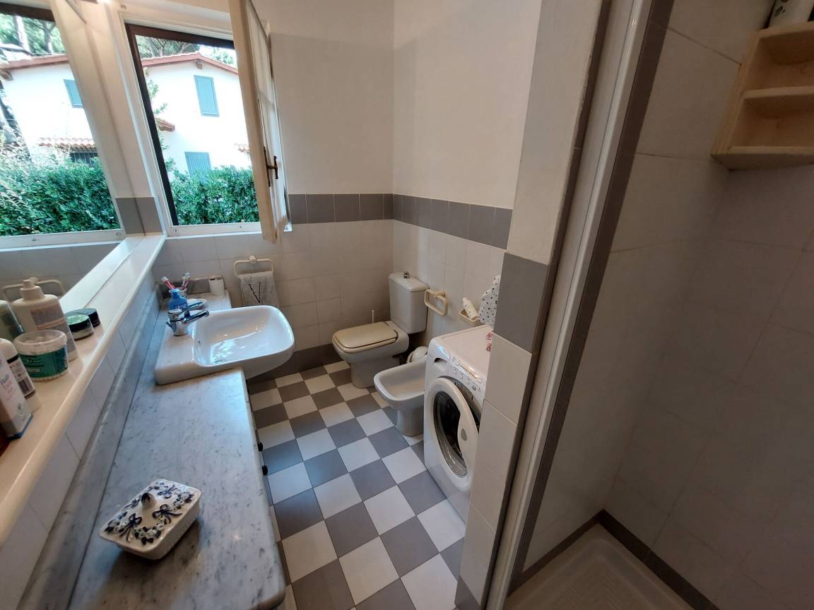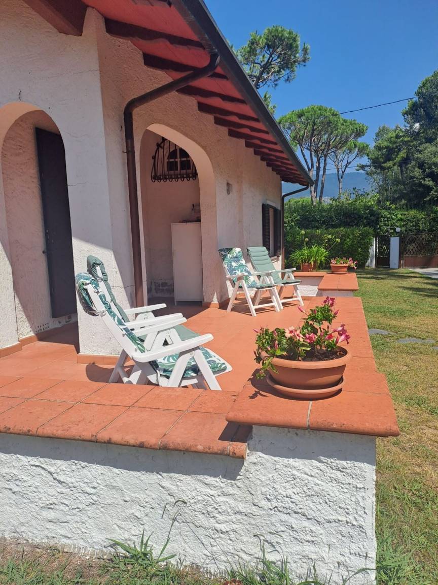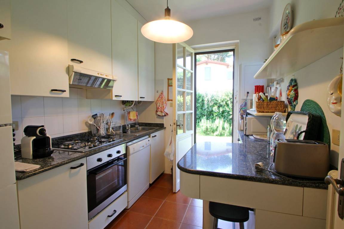 Küche: Spülmaschine, Kühlschrank, Tiefkühler, Mikrowelle, Herd, Ofen, Toaster, Italienische Kaffeemaschine, Amerikanische Kaffeemaschine, Ausgang auf den Garten.