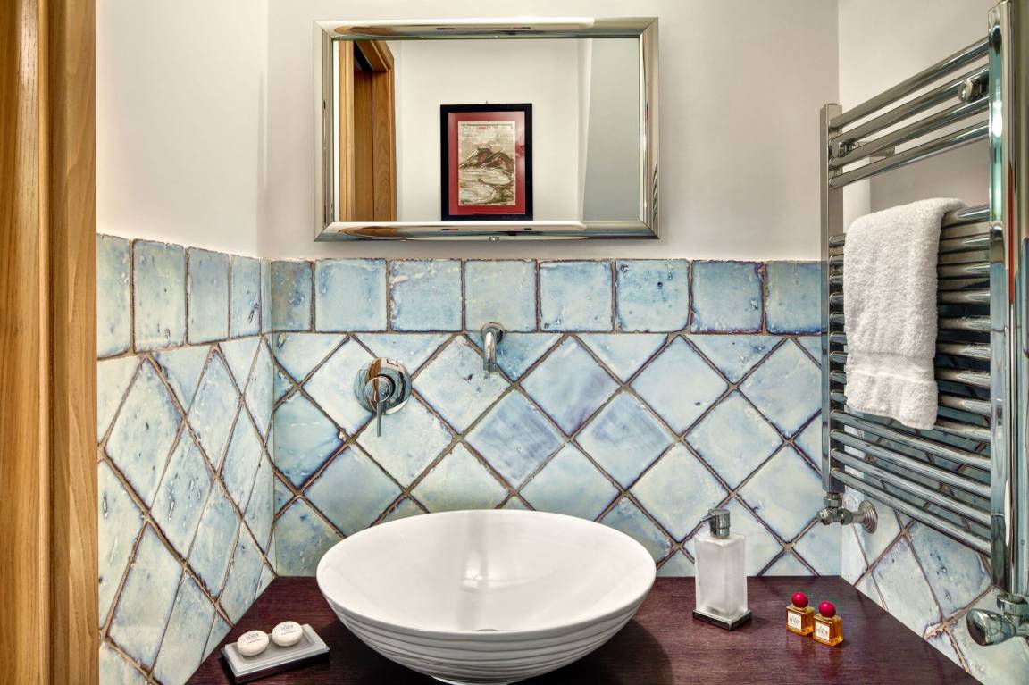 Schlafzimmer mit Bad: Doppelbett, WiFi Internet, Klimaanlage, Satelliten-TV, Waschbecken, WC, Bidet, Dusche, Fön.