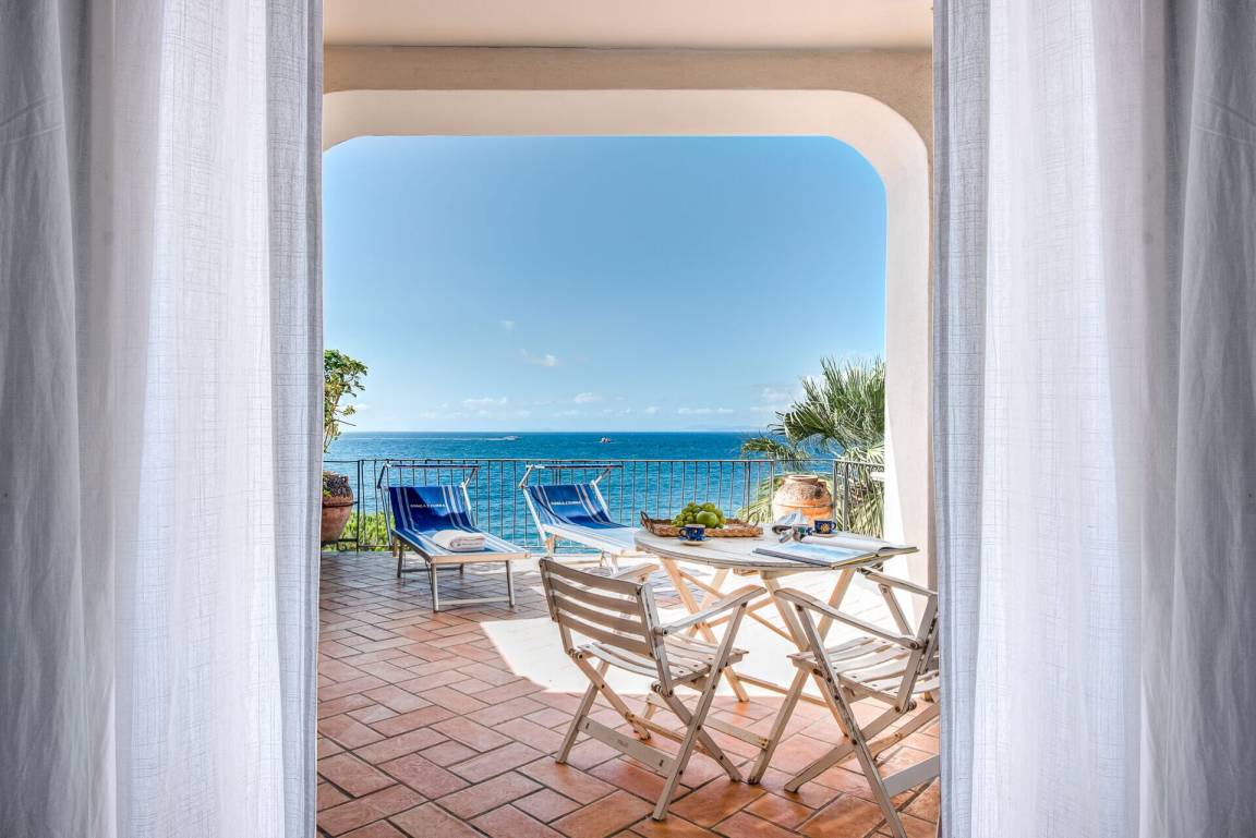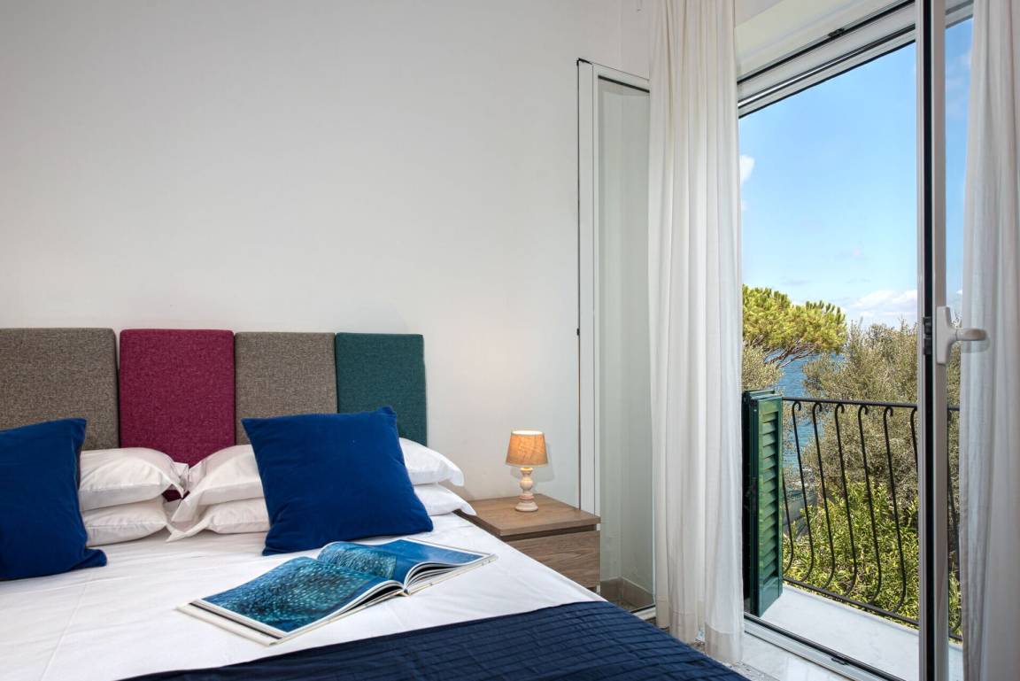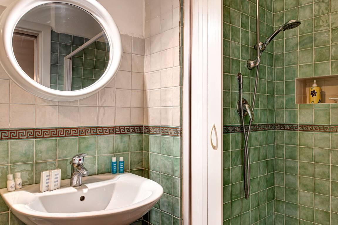 Schlafzimmer mit Bad: Einzelbett, WiFi Internet, Klimaanlage, Sessel, Waschbecken, WC, Bidet, Dusche, Fön, Ausgang auf den Balkon.
