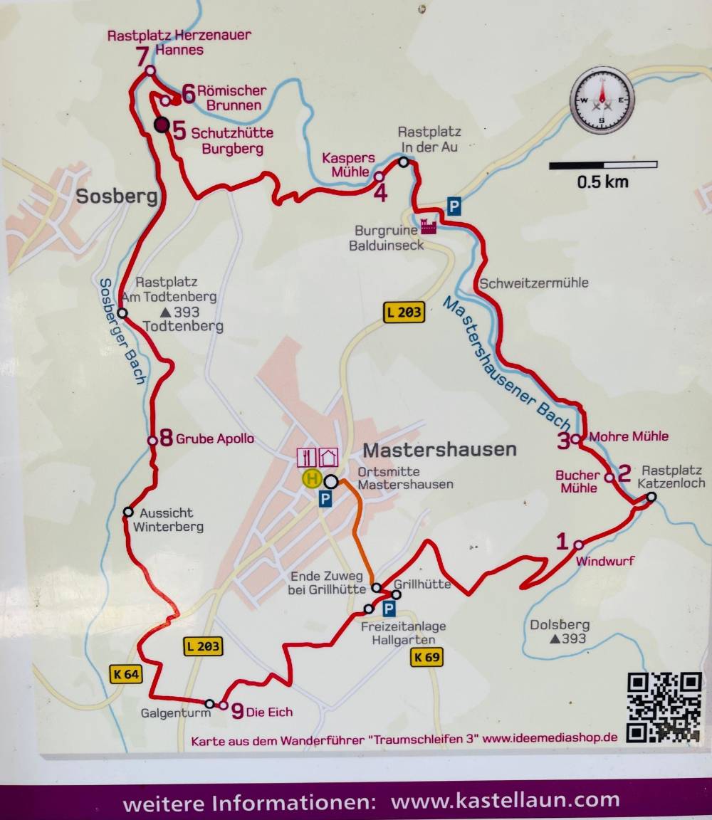 Über die Traumschleife "Masdascher Burgherrenweg" führt uns diese Variante bis zur längsten Hängeseilbrücke Deutschlands, die sich über eine Länge von 360 m und 100 m über Grund spektakulär bei der "Geierlay" über das Tal des Mörsdorfer Baches spannt. Hunsrück: Beliebter Rundwanderweg Mitten in der reizvollen Hunsrücklandschaft wartet mit dem "Masdascher Burgherrenweg" eine traumhafte Rundtour durch verwunschene Täler mit murmelnden Bächen, sanften Höhen mit herrlichen Fernsichten, uralten Gemäuern aus Kelten, Römer und Ritterzeiten darauf entdeckt zu werden. Der Weg ist top gepflegt, wartet mit reichlichen Rastplätzen - u. a. einer trutzigen Burgruine, Einkehrmöglichkeit zum Kaffee, einer empfehlenswerten Gaststätte zum Tagesabschluss und als krönender Höhepunkt - pures Adrenalinfeeling beim überqueren Deutschlands längster Hängeseilbrücke "Geierlay"