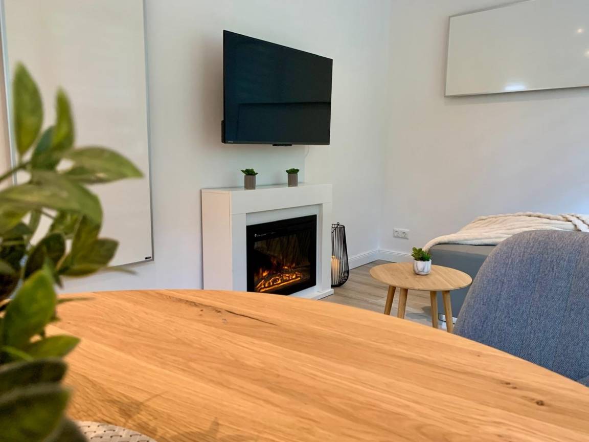 - einen gemütlichen Wohnbereich mit TV & Kamin - perfekt für kuschelige Abende zu zweit