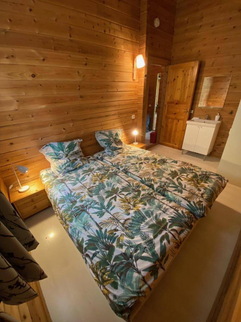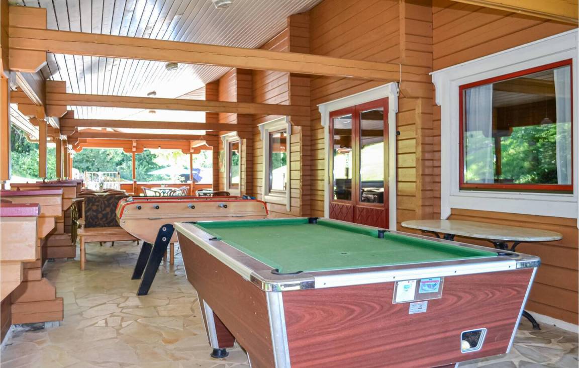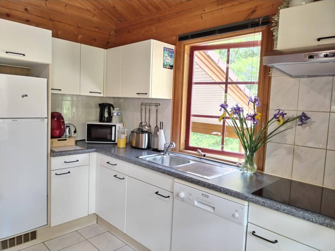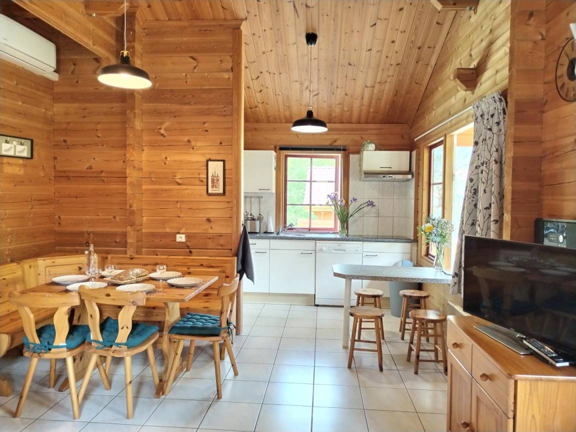 „Chalet moderne, bien agencé, bien équipé y compris des équipements de sports (tennis, badminton, football...) pour occuper les enfants. Dans un village vacances très calme, parfait pour déjeuner/dîner en terrasse.“