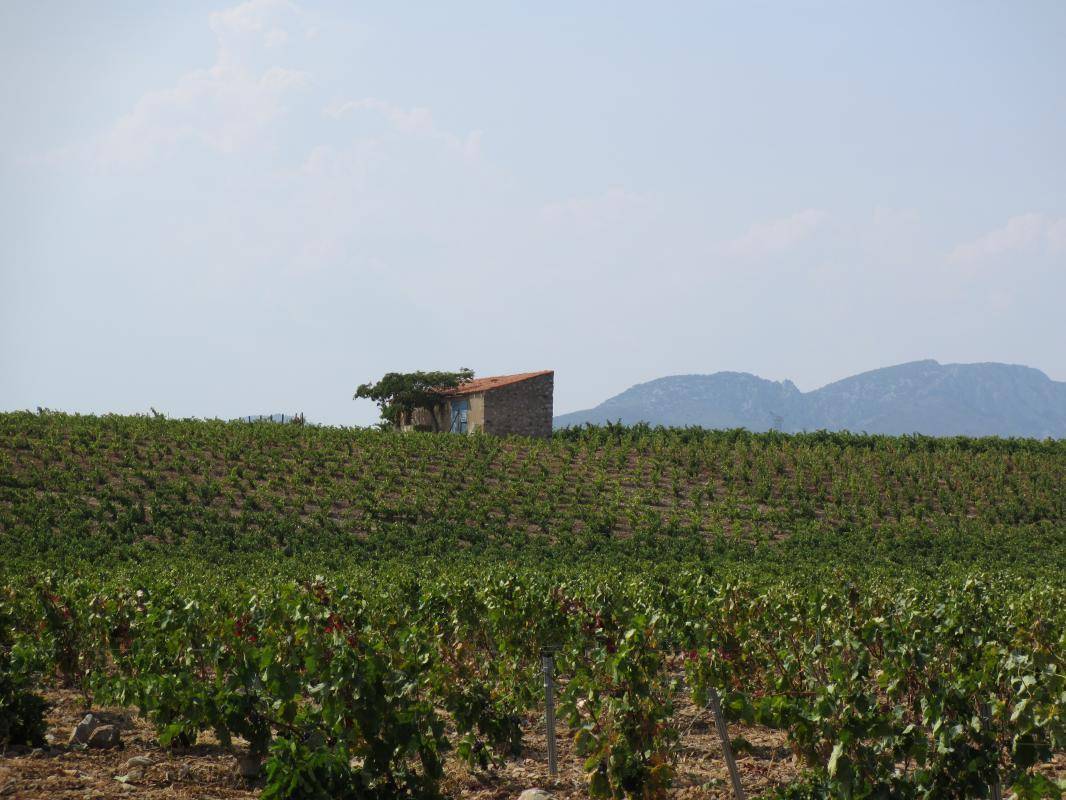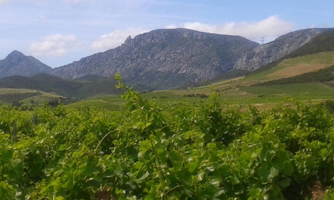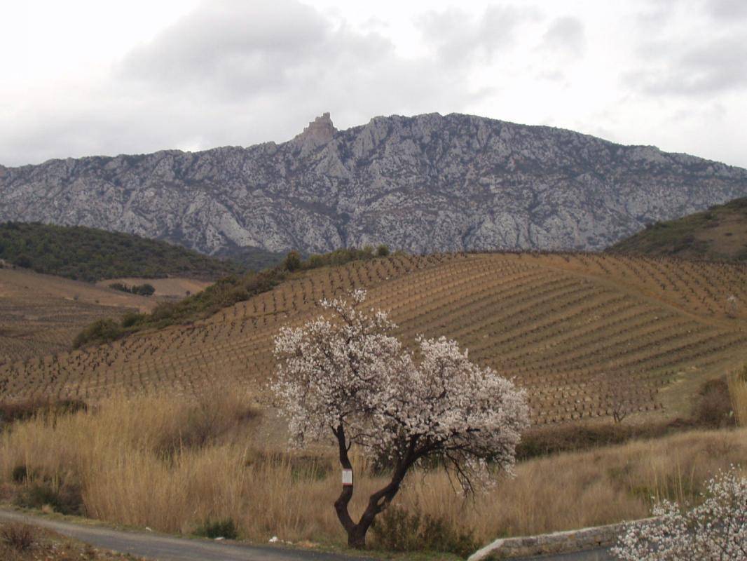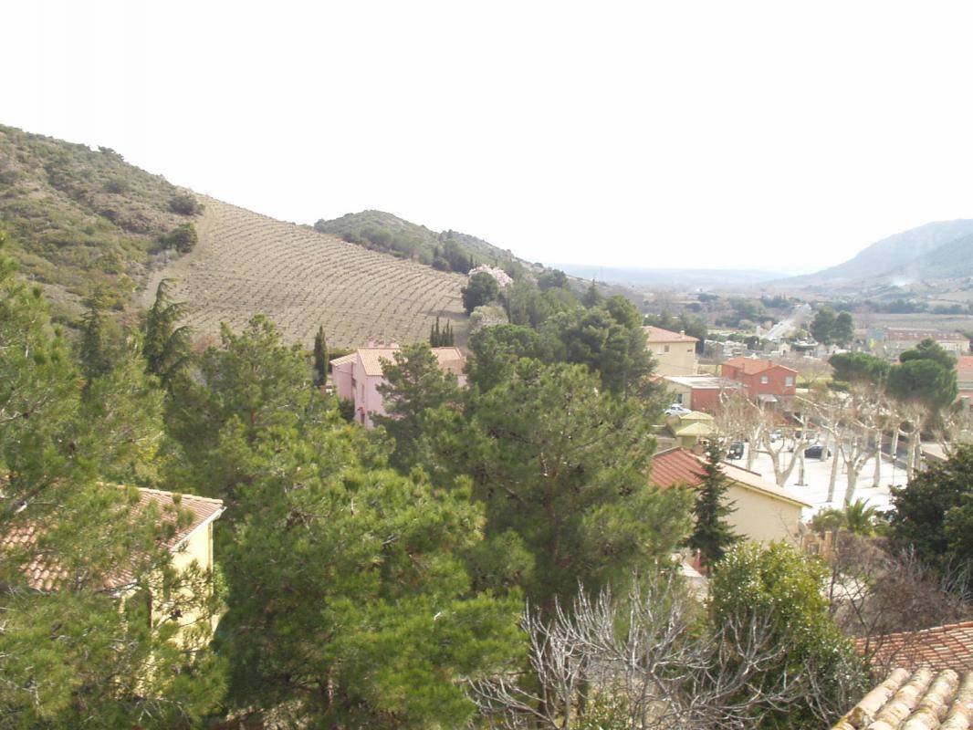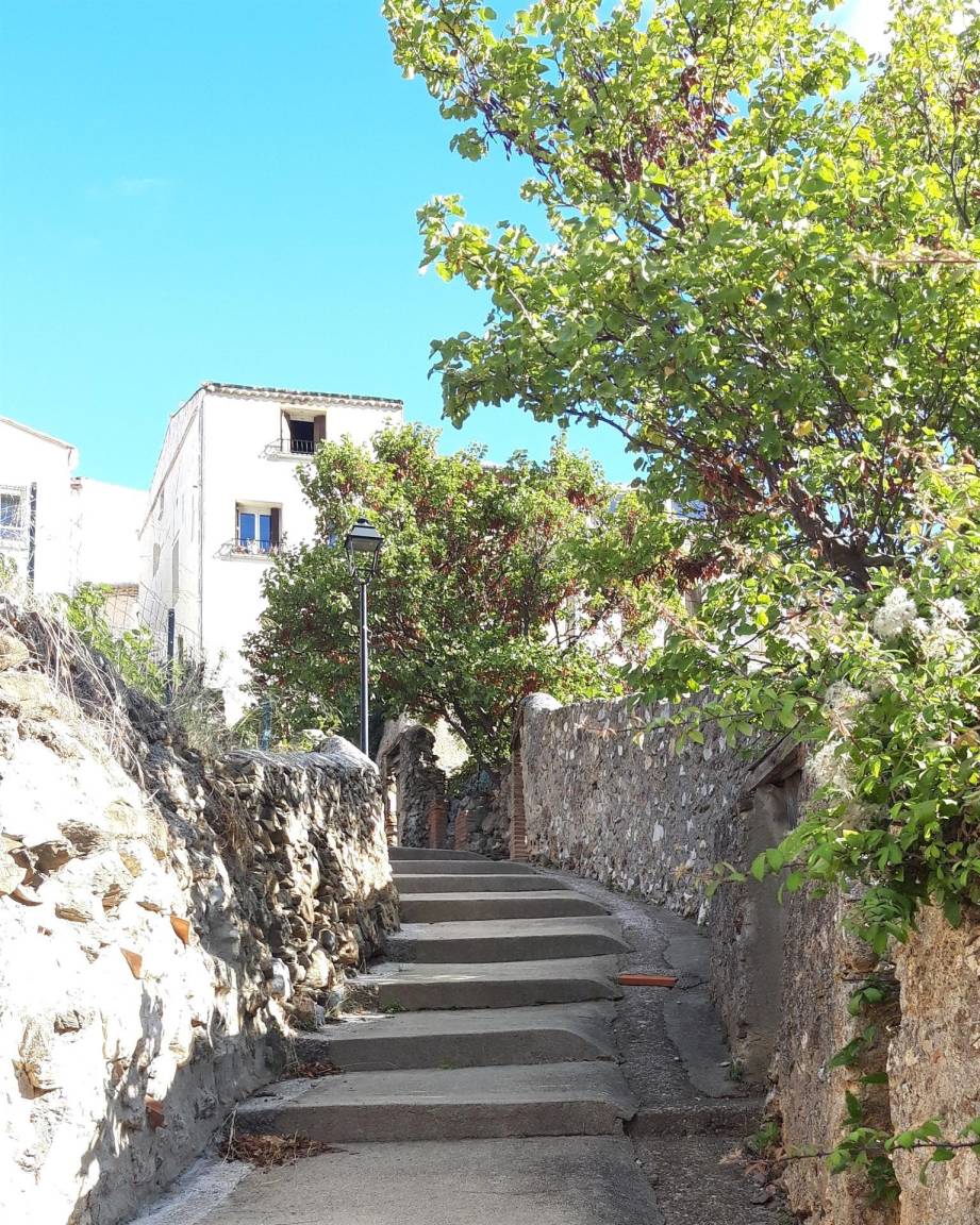 „Endroit agréable dans les ruelles de Maury Vue sur le château de Queribus.“