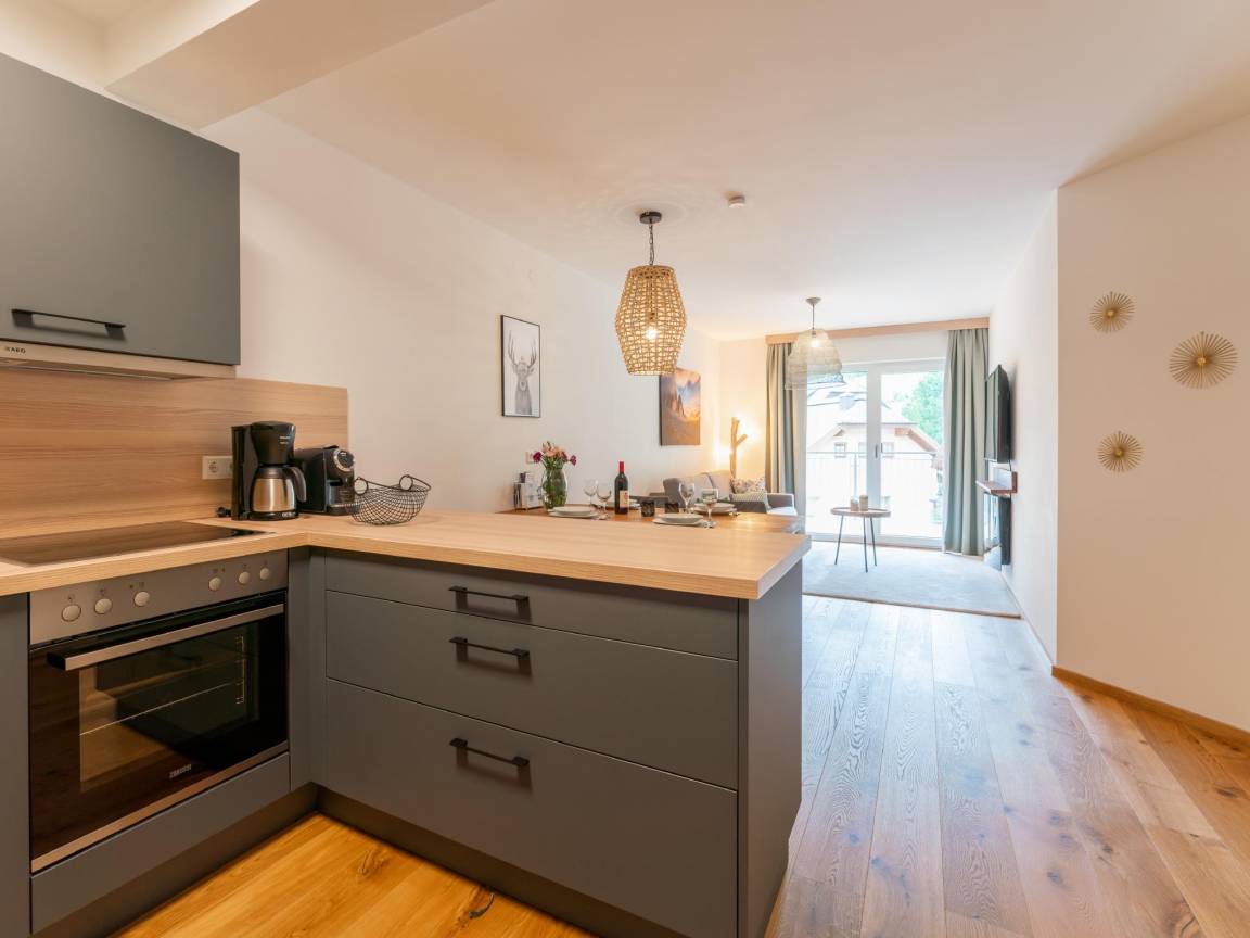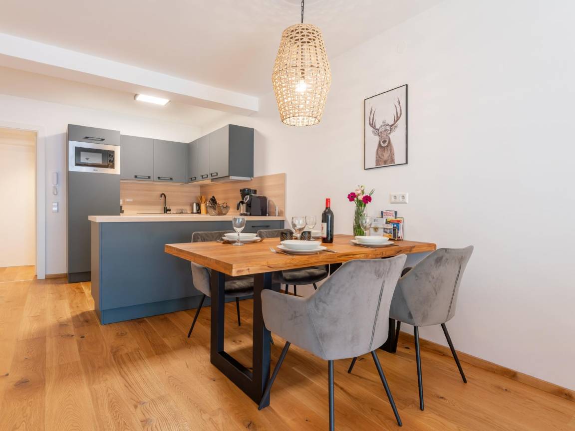 Hausbeschreibung : Diese schöne und modern eingerichtete Ferienwohnung befindet sich in der zweiten Etage, die Sie bequem mit dem Aufzug erreichen können. Die Wohnung verfügt über einen möblierten Balkon, von dem aus Sie unter anderem einen schönen Blick auf die Kirche von St. Wolfgang genießen können. Das Zentrum der Marktgemeinde Mauterndorf ist zu Fuß erreichbar. Im Carport befindet sich ein Parkplatz für 1 Auto. Wir bitten Sie, weitere Autos auf dem öffentlichen Parkplatz zu parken.