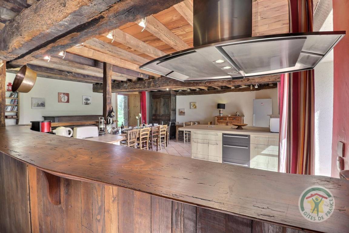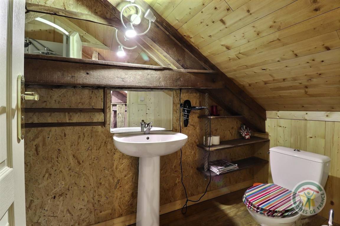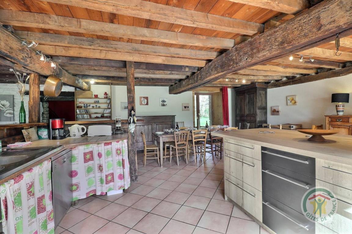 Im Erdgeschoss: ein 75 m² großes Wohnzimmer mit Küche, Essbereich und Wohnzimmer mit Holzofen, ein Schlafzimmer mit einem 140 x 190 cm großen Bett und einem Zwischengeschoss mit einem Kinderbett, einem Badezimmer mit Badewanne mit zwei Waschbecken, einer Badewanne und einem Dusche, separates WC. Im ersten Stock: ein Schlafzimmer mit einem 140x190-Bett, ein Schlafzimmer mit einem 140x190-Bett, ein Schlafsofa für zwei Betten und ein Büroraum, ein kleines Badezimmer mit WC. Auf der zweiten Etage: ein Schlafsaal mit 4 Betten von 90 x 190 und 2 Etagenbetten von 90 x 190. Kein Fernseher. Internetzugang per Wi-Fi. Parkplatz auf dem Grundstück.