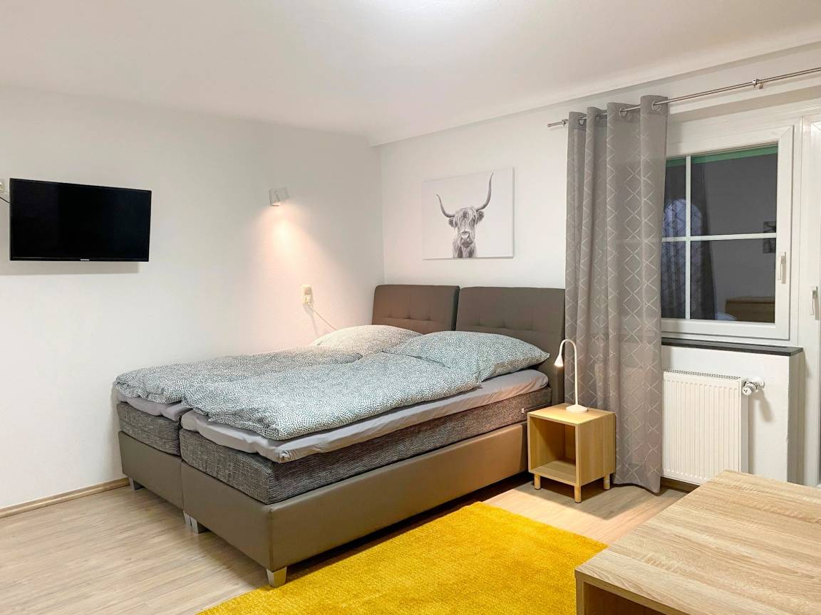 1 Wohn-, Schlafzimmer mit Doppelbett, Bettwäsche, SAT-TV, Esstisch, Balkon