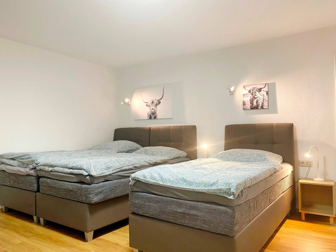 1 Schlafzimmer mit 3 Boxspringbetten, jeweils 90cmx200cm, Bettwäsche, SAT-TV
