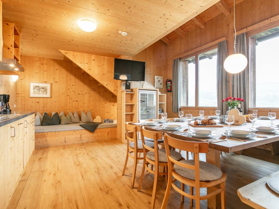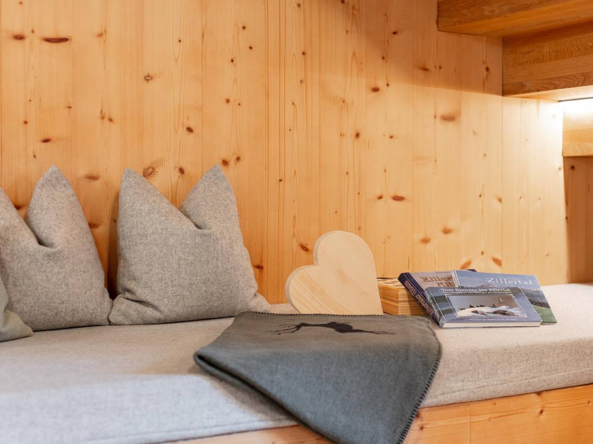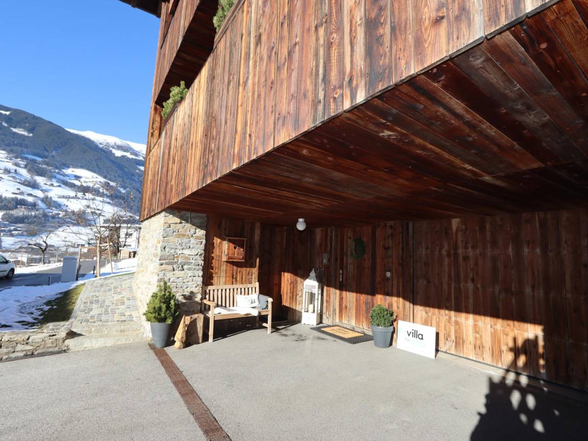 Hausbeschreibung : Am Ortsrand von Ramsau unweit von Mayrhofen liegt das Waidachhaus mit viel Holz und Liebe zum Detail modern eingerichtet. Die Wohnung für 10 bis max. 16 Personen liegt im 1. und 2.Stock, wo sie ganz alleine mit viel Privatsphäre und eigenem Eingang wohnen. Sie verfügen über 5-8 Schlafzimmern und 2-3 Bäder, im großen Wohn-Esszimmer können Sie herrliche Speisen zubereiten und die Infrarot-Sauna nach dem Skitag genießen. 6 Garagenplätze mit 2 E-Tankstellen sind vorhanden. Skibus vor der Haustüre
