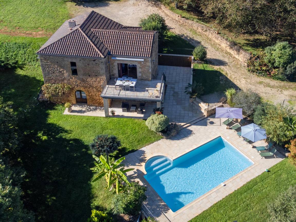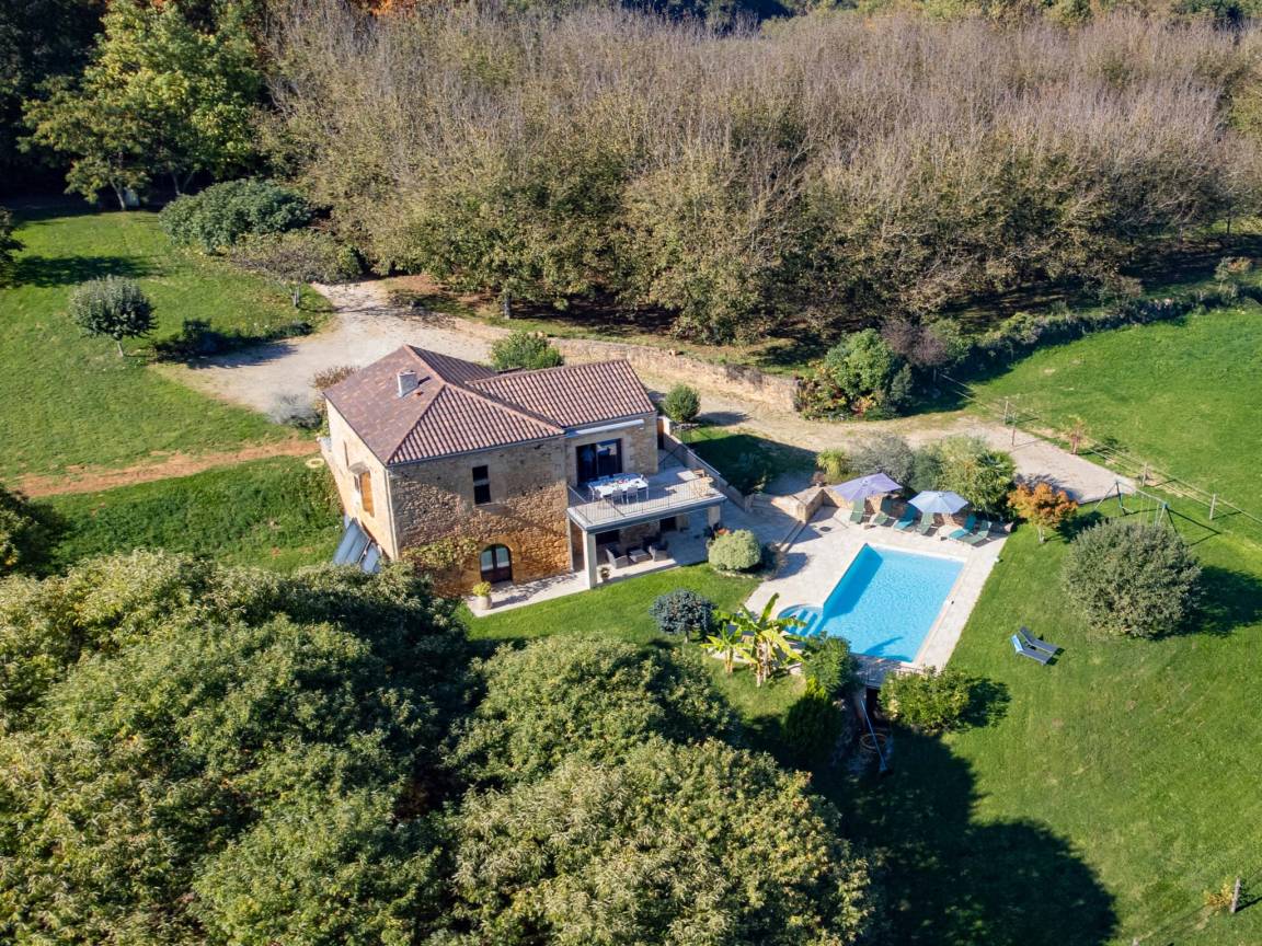 An der Spitze der Dordogne gelegen, an der Grenze zu Lot und Lot et Garonne. Eine schöne Gegend, nicht weit von den touristischen Sehenswürdigkeiten an der Dordogne, den Weinbergen von Cahors und dem Fluss Lot.