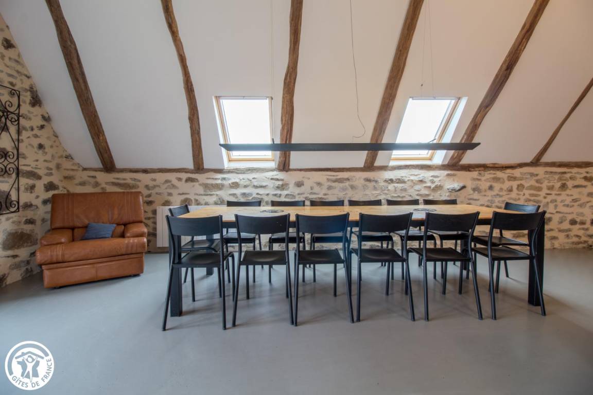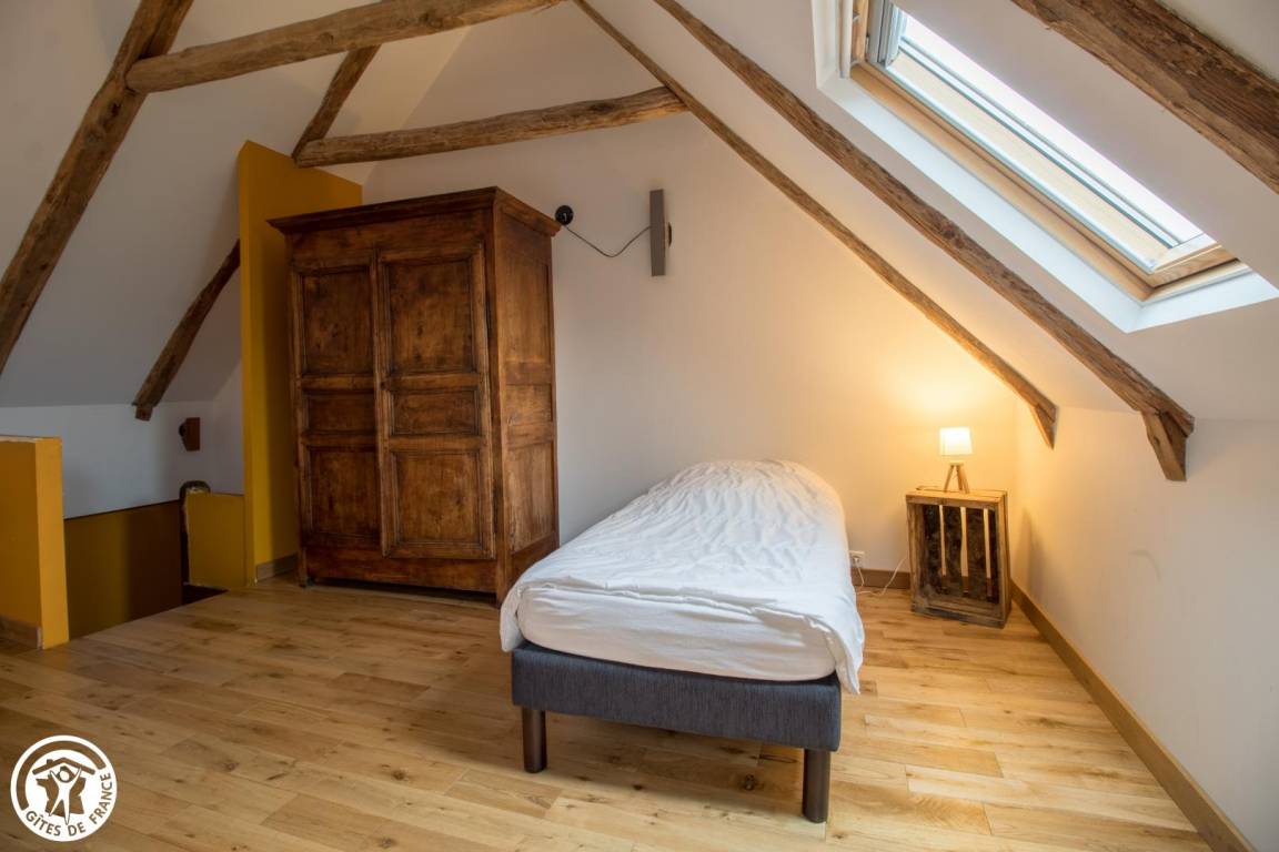 „Belle demeure restaurée avec goût. Seul point négatif: La vaisselle n’est pas en adéquat avec le nombre de personnes pouvant occuper le gîte. Il manque des bols, des mugs …“